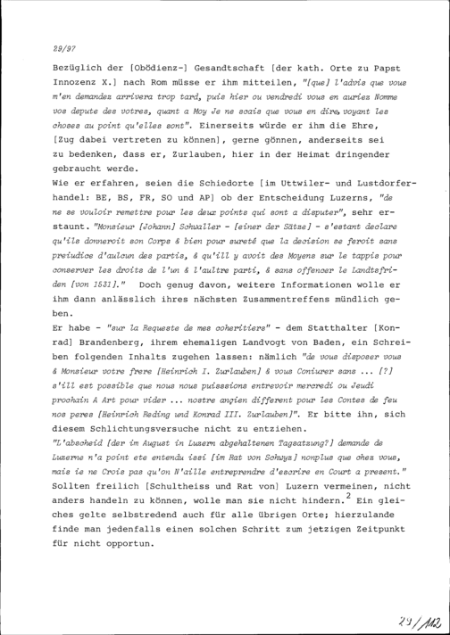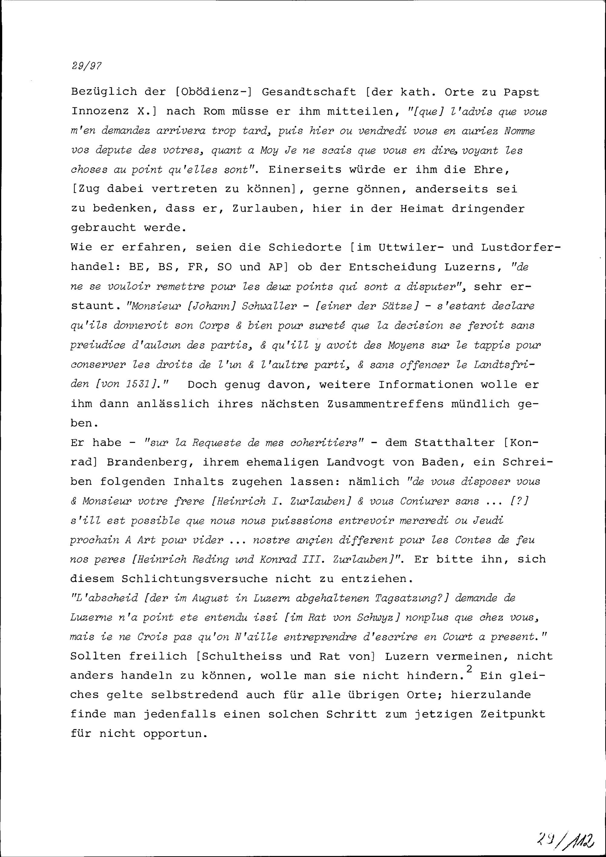 Schreiben von Wolfgang Dietrich Theodor Reding an Beat II. Zurlauben, Ammann, Zug
