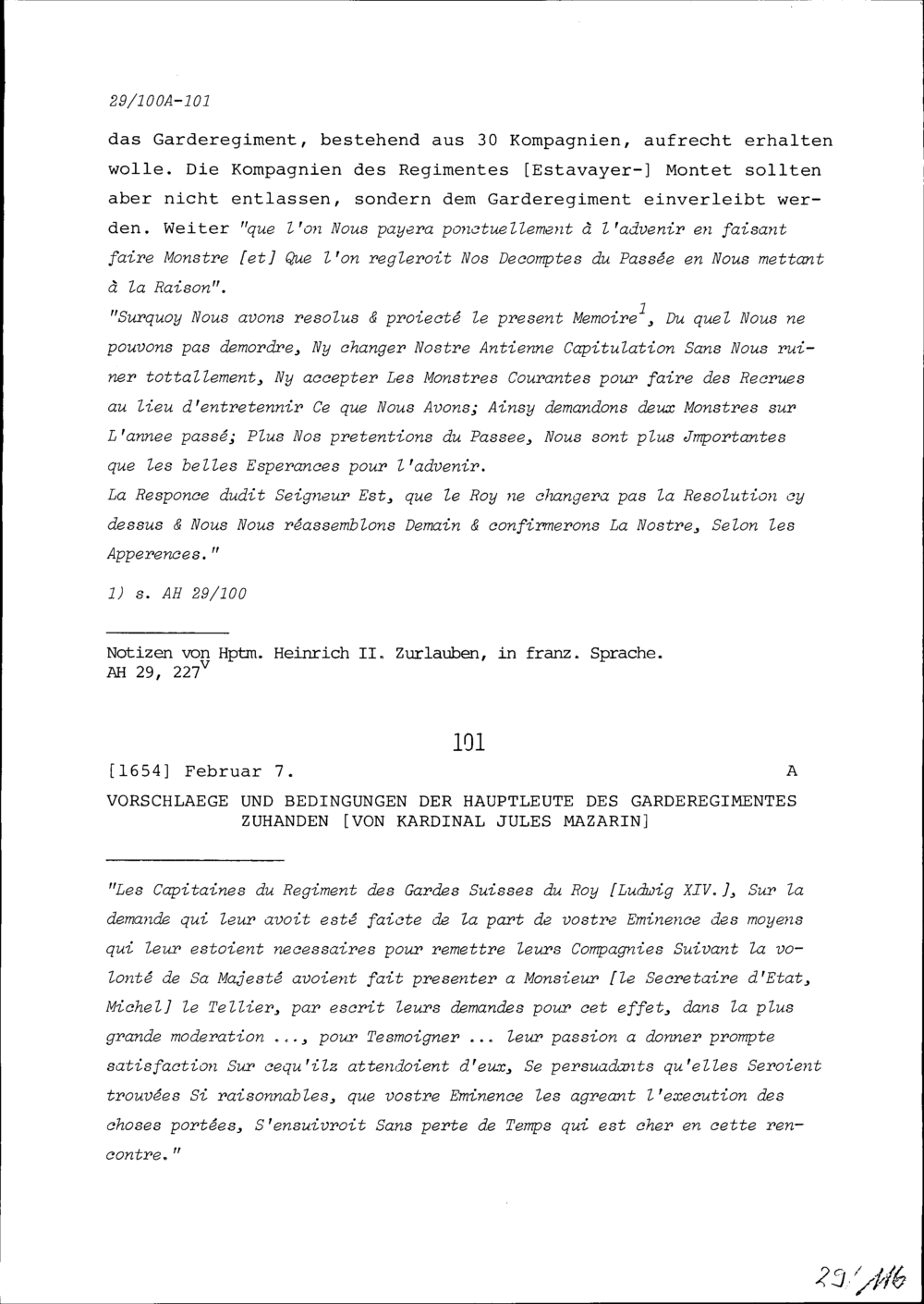 Vorschläge und Bedingungen der Hauptleute des Garderegiments zuhanden von Jules Mazarin,...