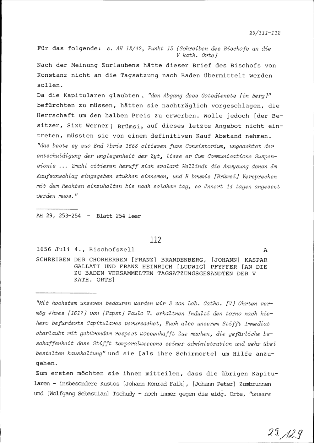 Schreiben von Franz Brandenberg, von Johann Kaspar Gallati und von Franz Heinrich...