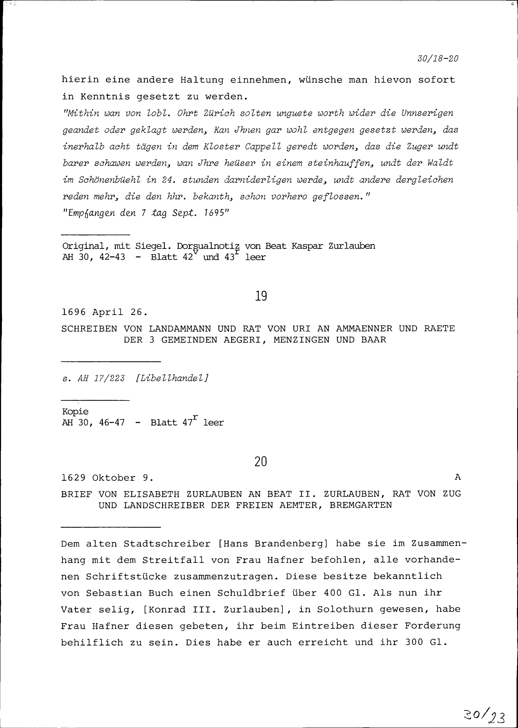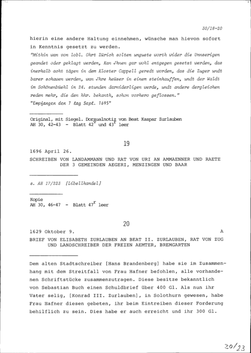 Schreiben des Landammanns und Rats Uri an Ammänner und Räte der Drei Gemeinden des Äusseren Amts