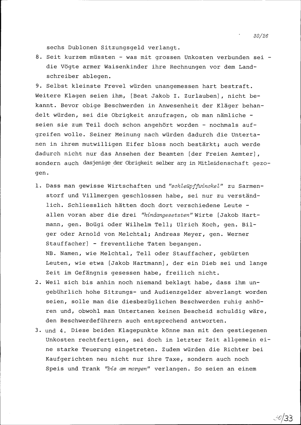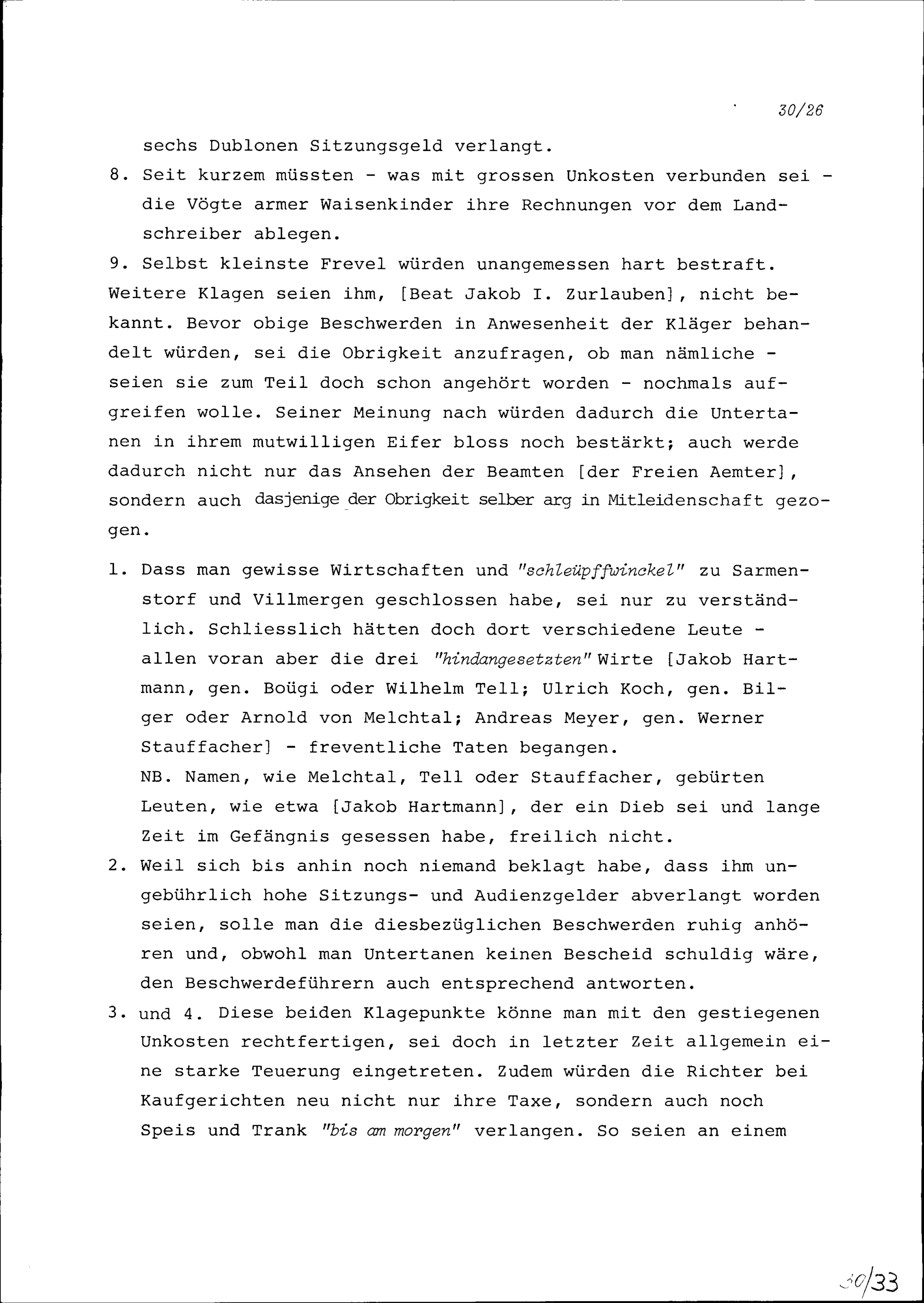 Beschwerden der Untertanen der Freien Ämter sowie die entsprechenden Entgegnungen von Beat Jakob I. Zurlauben, Landschreiber