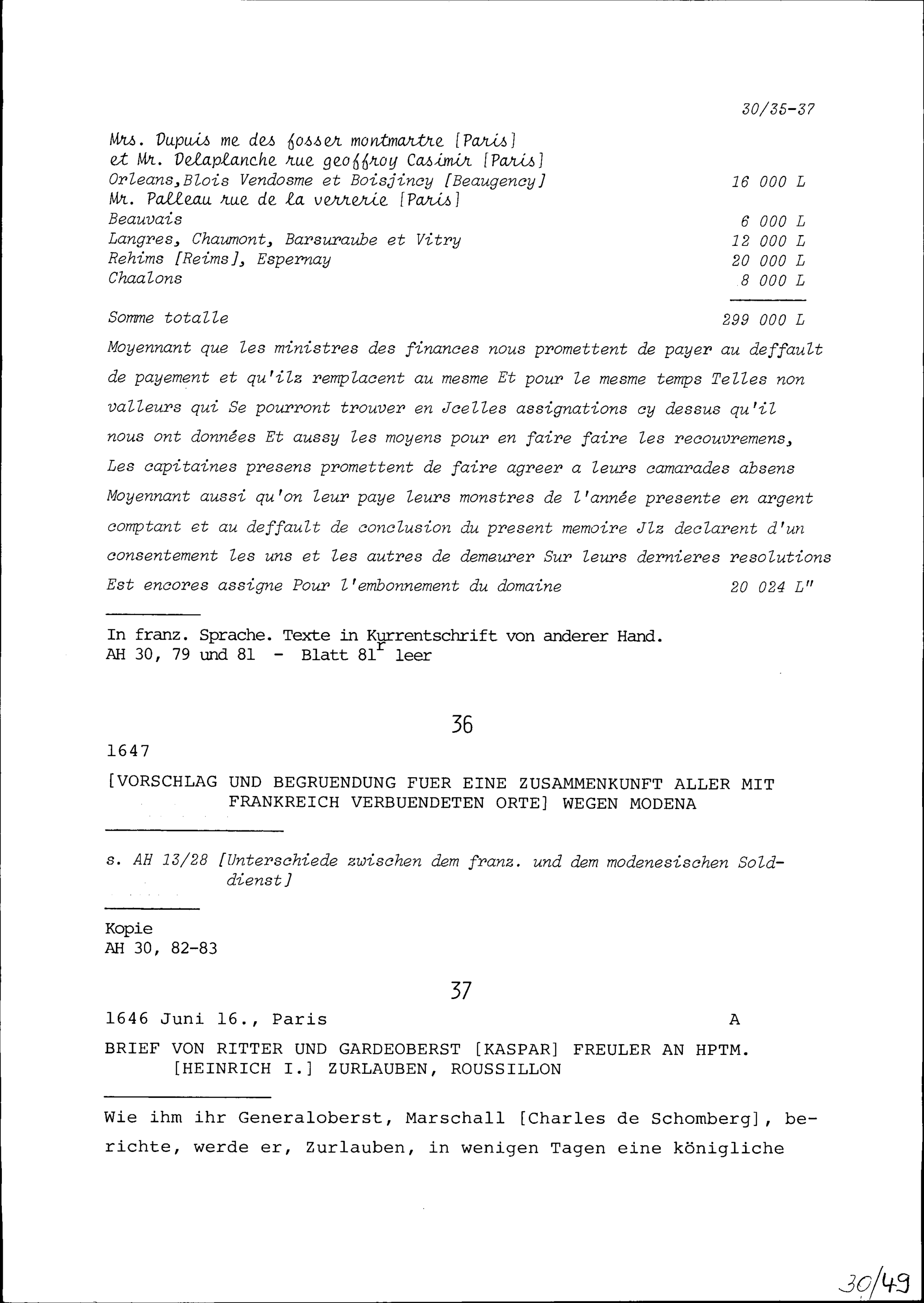 Vorschlag und Begründung für eine Zusammenkunft aller mit Frankreich verbündeten Orte wegen Modena