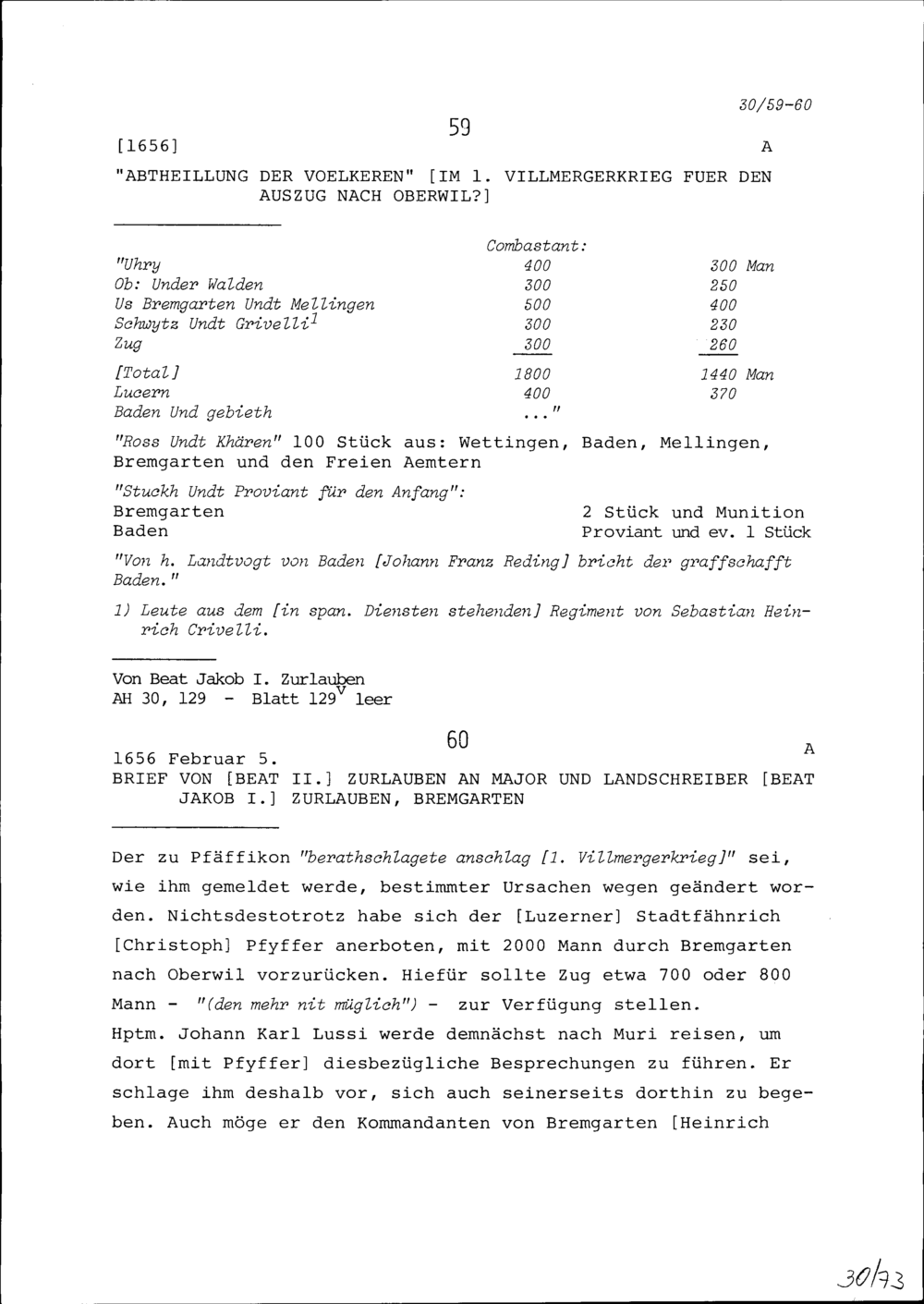 Truppen im Ersten Villmergerkrieg für den Auszug nach Oberwil