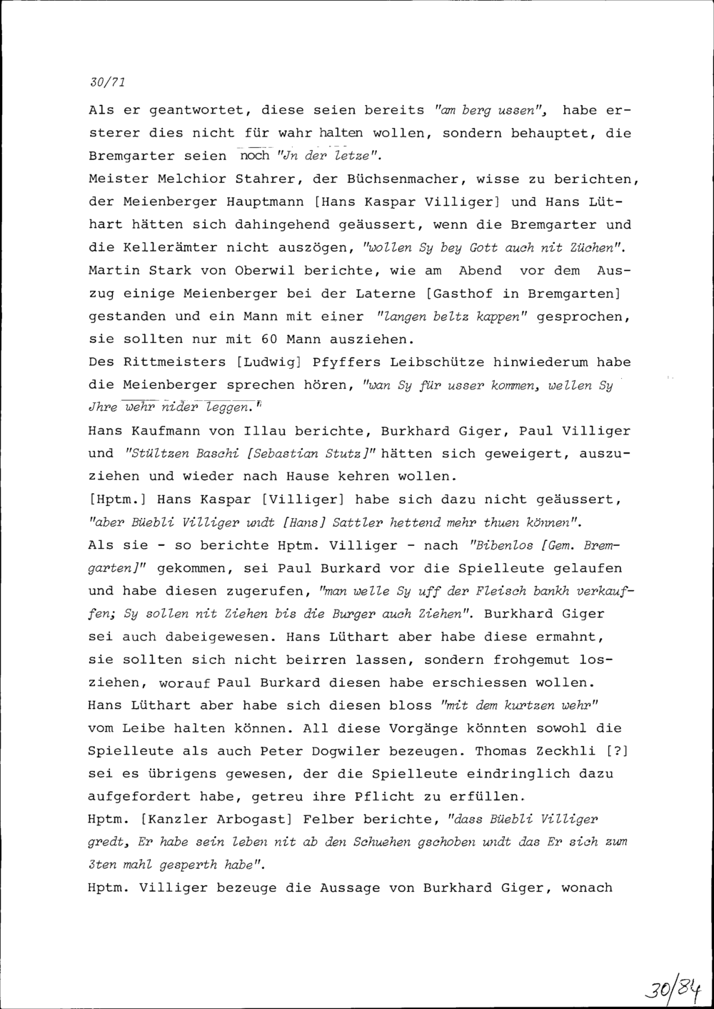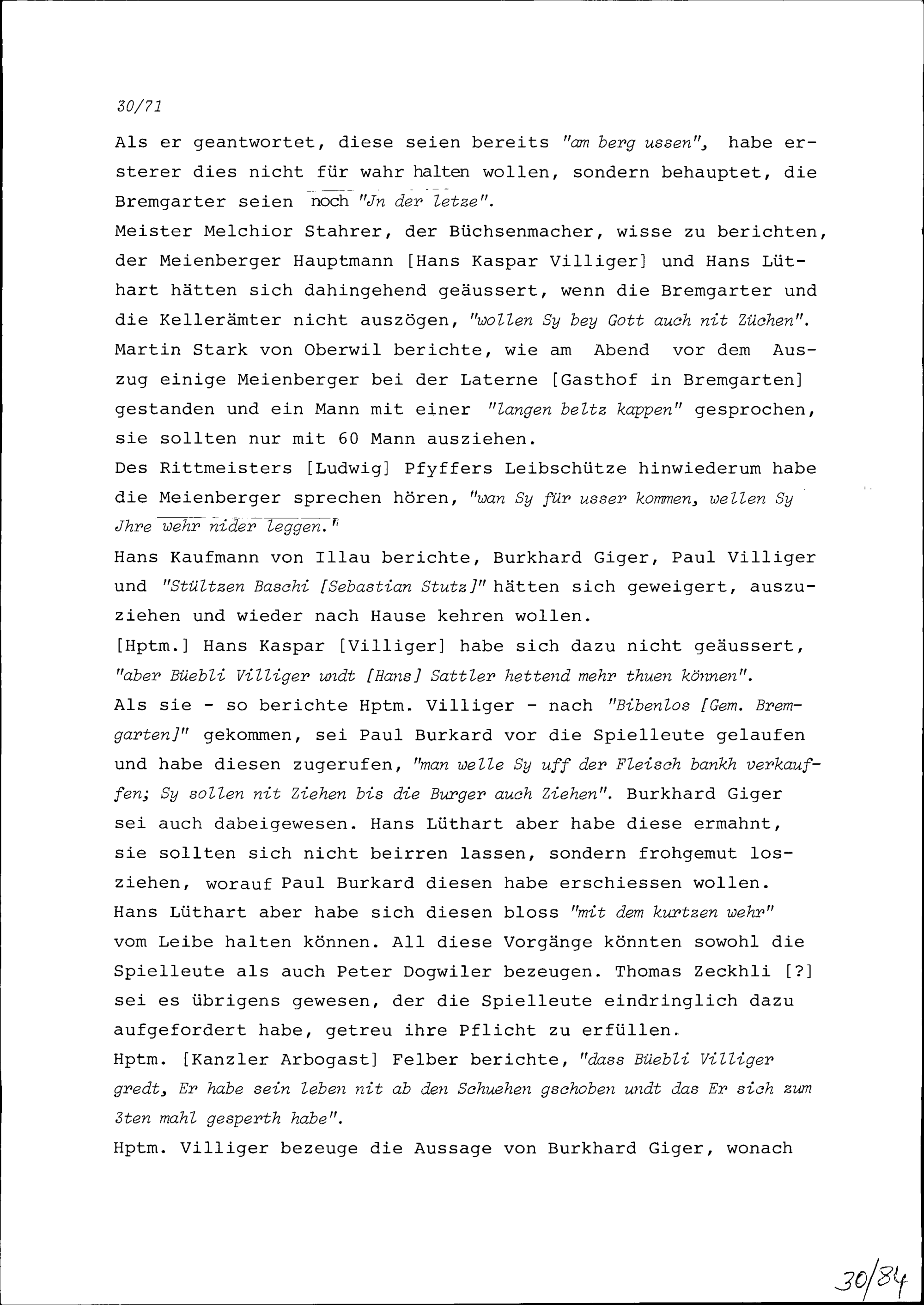 Bericht über die widerspenstigen Meienberger im Ersten Villmergerkrieg