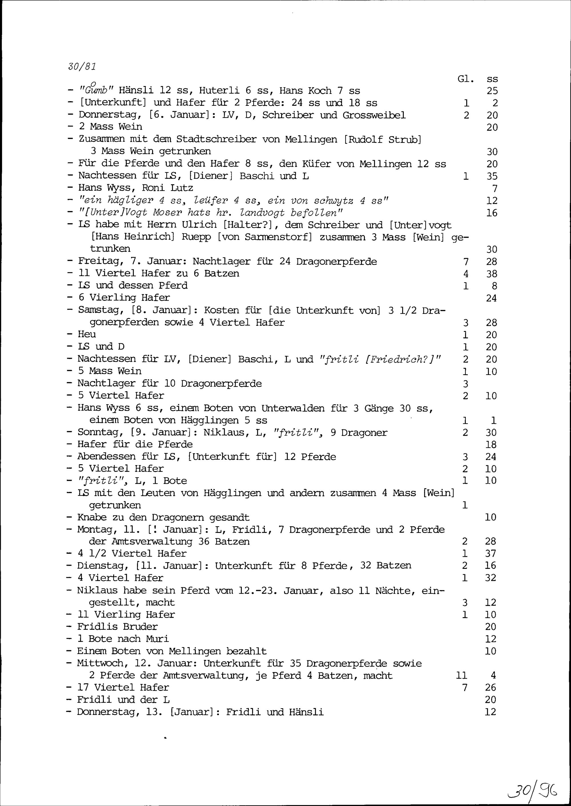 Rechnung von Johann Melchior Kyd für Jakob Wirz, Landvogt der Freien Ämter, in der Zeit des Ersten Villmergerkriegs