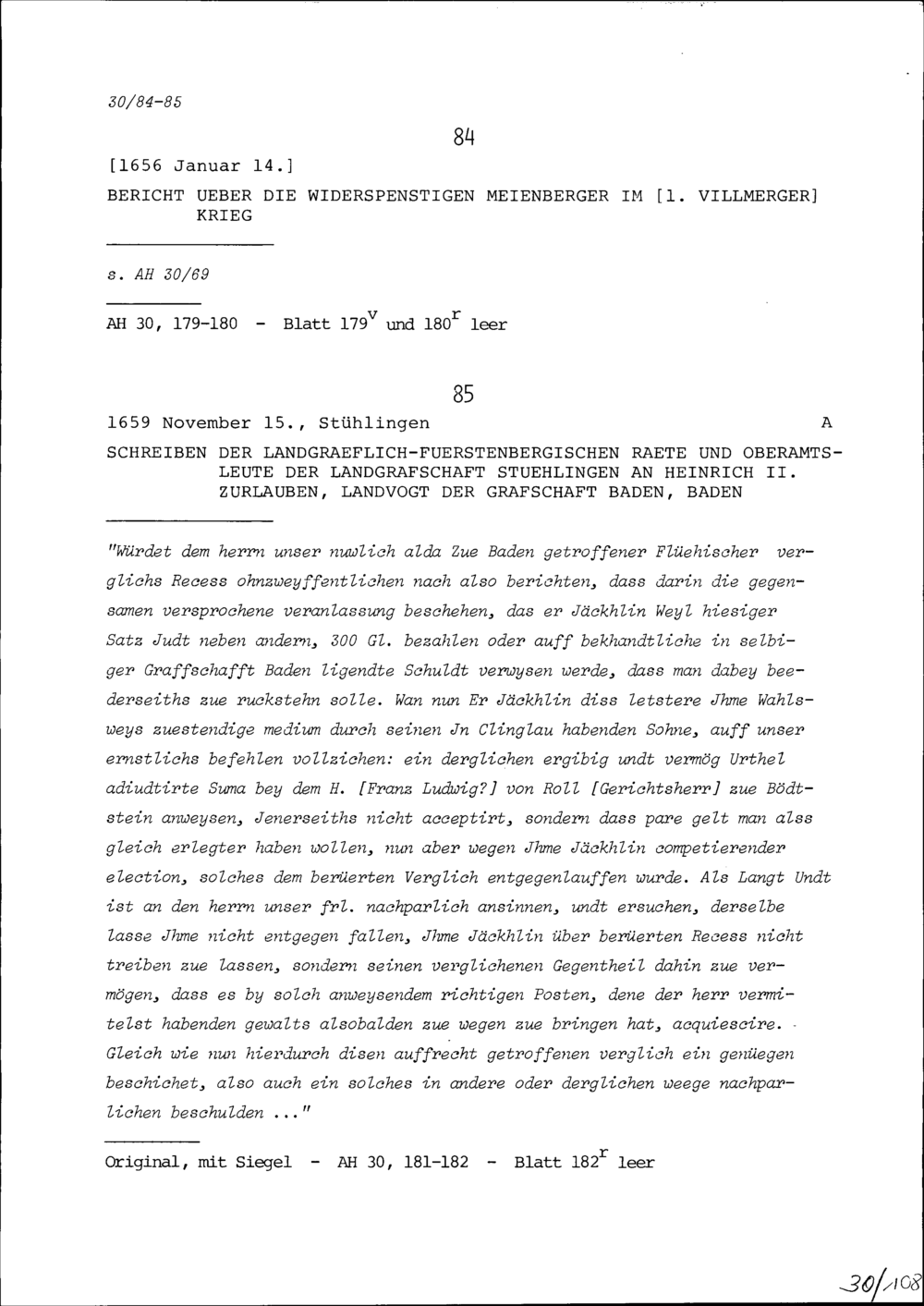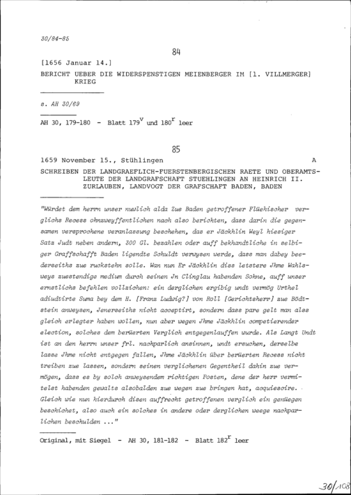 Bericht über die widerspenstigen Meienberger im Ersten Villmergerkrieg