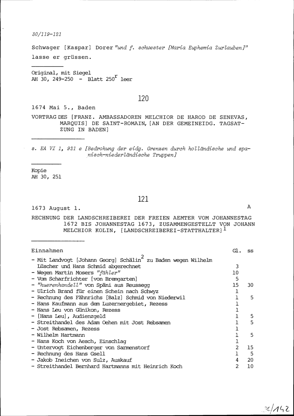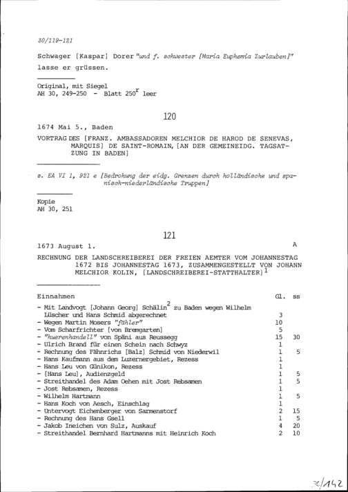 Vortrag von Melchior de Harod de Senevas, Marquis de Saint-Romain, Ambassador von Frankreich, an der Tagsatzung in Baden