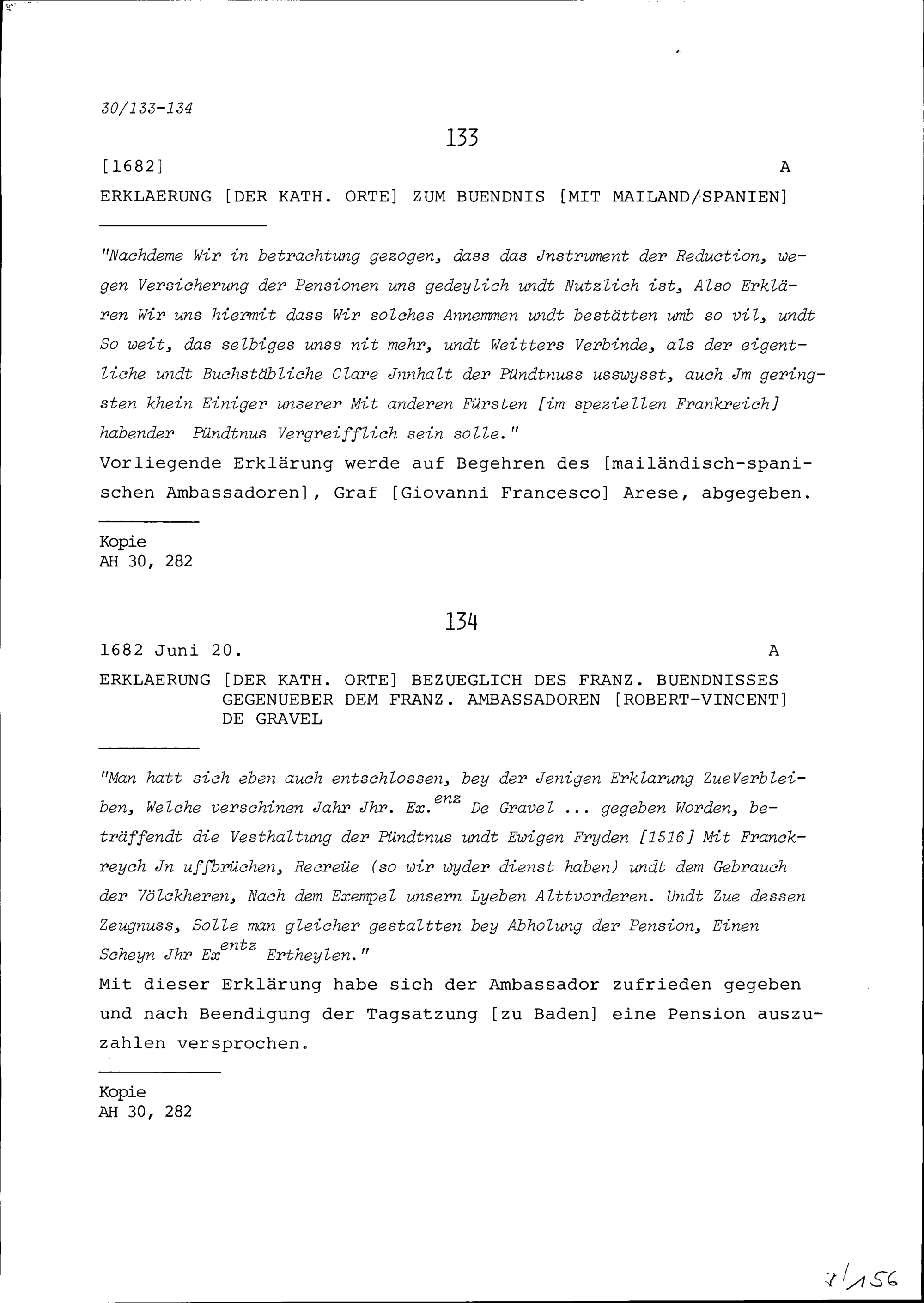 Erklärung der Katholischen Orte zum Bündnis mit Mailand-Spanien