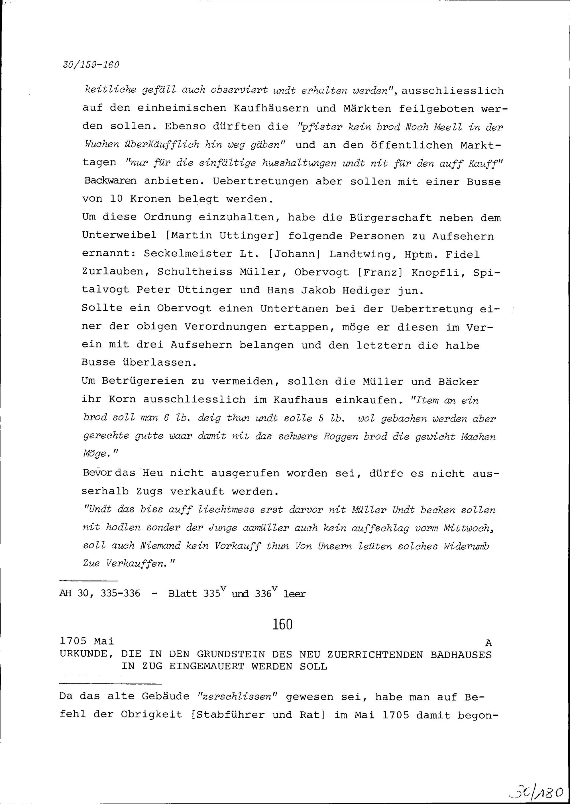 Urkunde, die in den Grundstein des neu zu errichtenden Badhauses in Zug eingemauert...