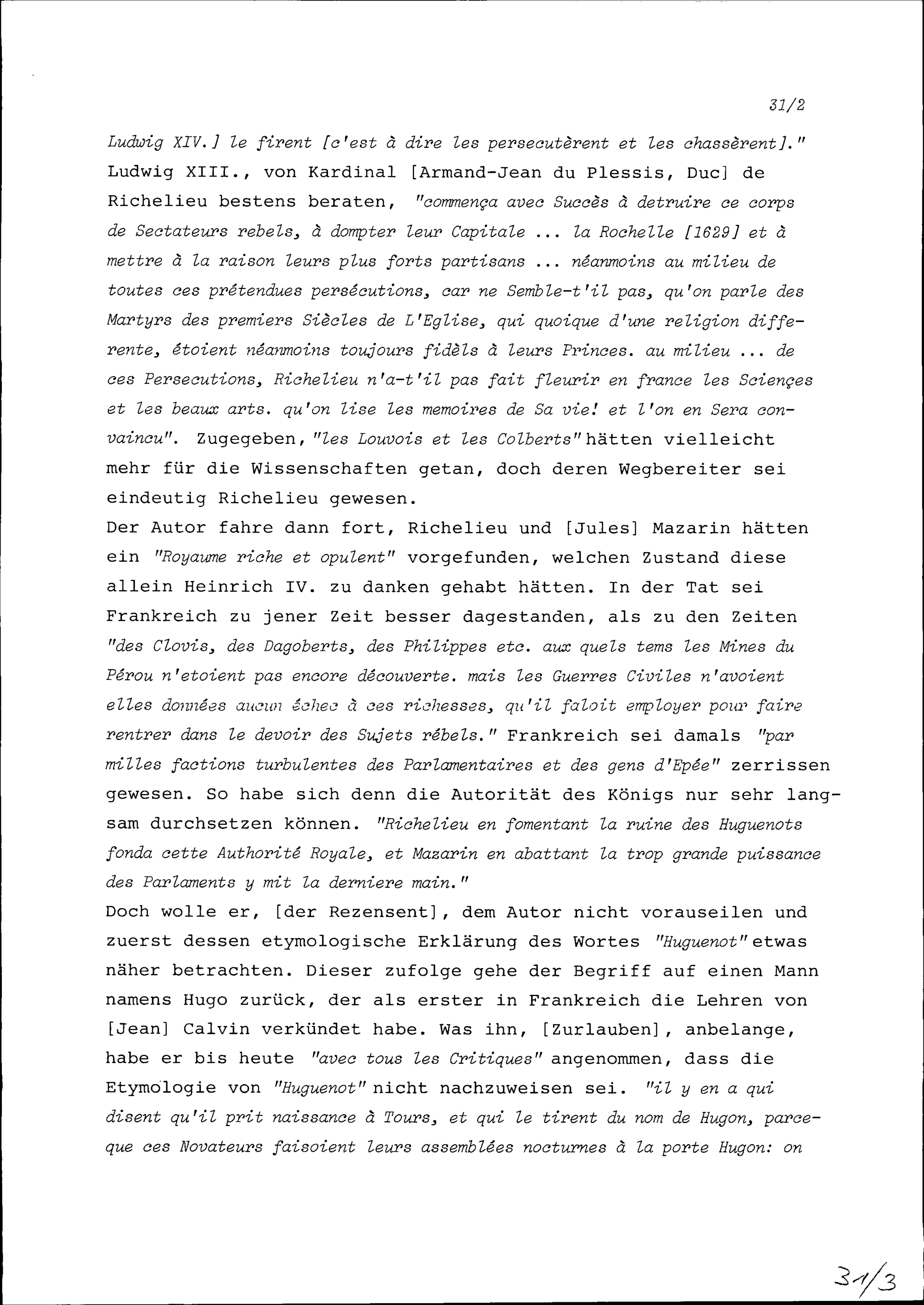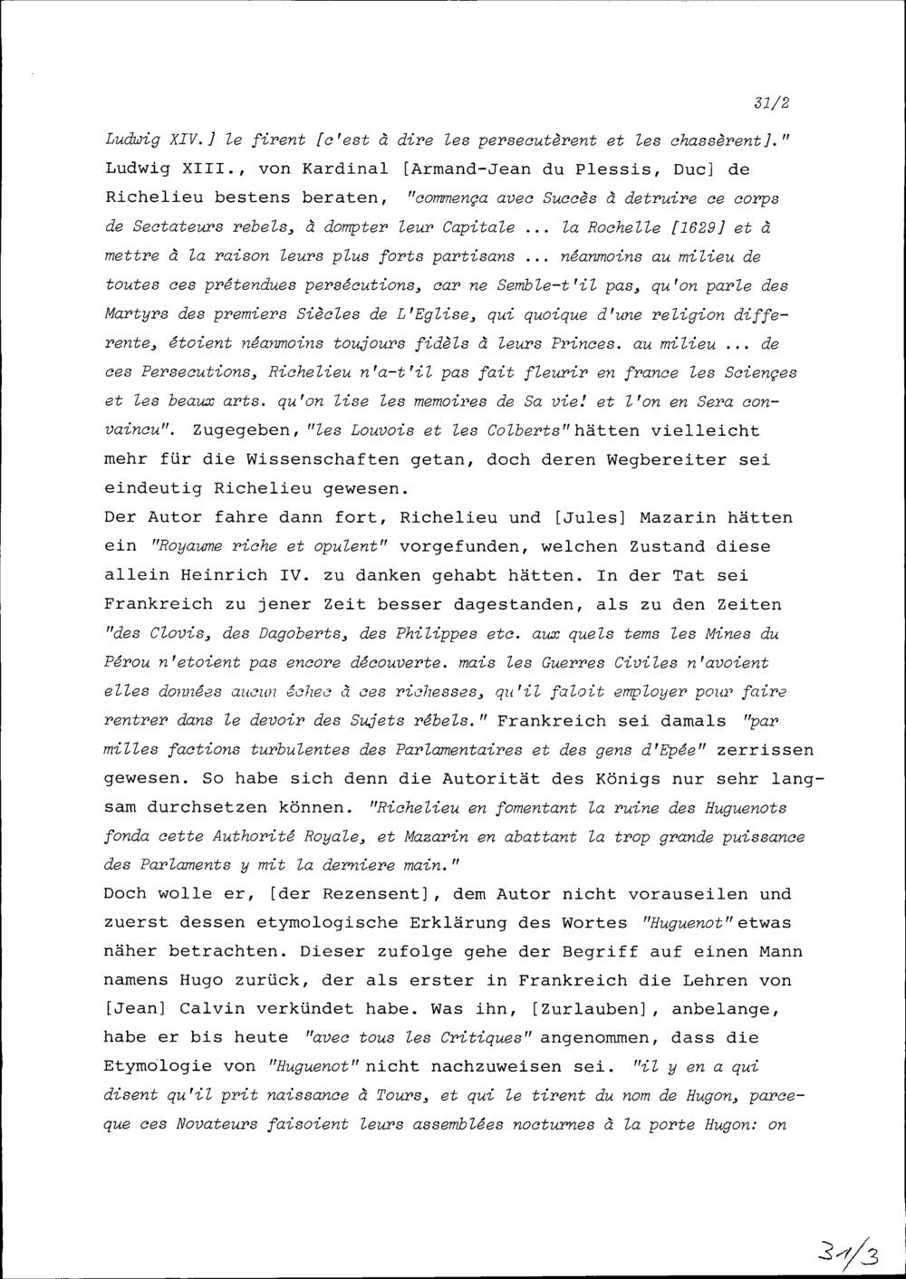 Anmerkungen von Beat Fidel Zurlauben zum Buch Reflexions historiques et politiques sur la conduite du Cardinal de Fleuri, premier-ministre de France, dans la conjoncture presente des affaires de l'Europe, Utrecht, 1741
