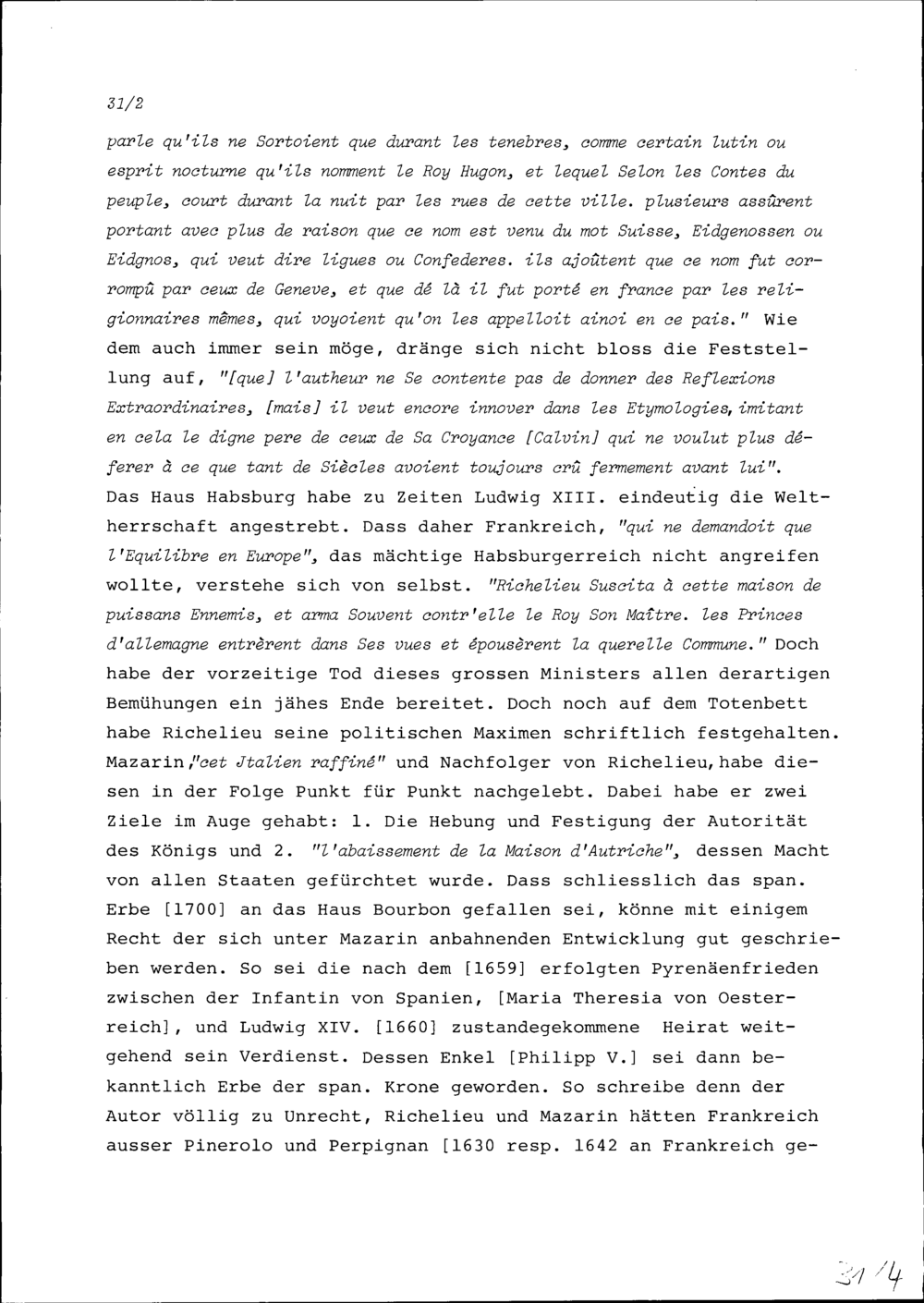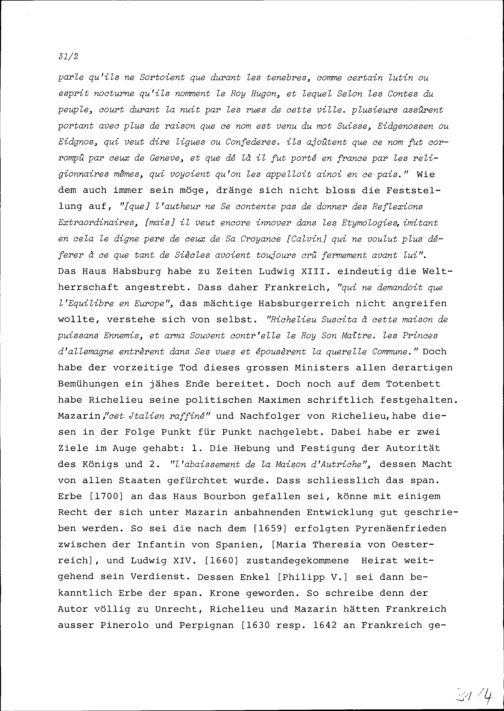 Anmerkungen von Beat Fidel Zurlauben zum Buch Reflexions historiques et politiques sur la conduite du Cardinal de Fleuri, premier-ministre de France, dans la conjoncture presente des affaires de l'Europe, Utrecht, 1741