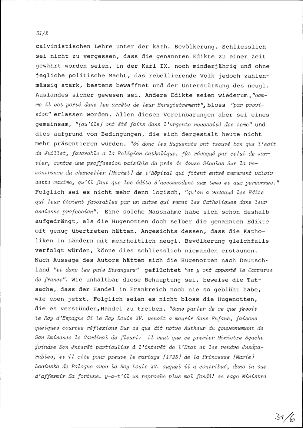 Anmerkungen von Beat Fidel Zurlauben zum Buch Reflexions historiques et politiques sur la conduite du Cardinal de Fleuri, premier-ministre de France, dans la conjoncture presente des affaires de l'Europe, Utrecht, 1741