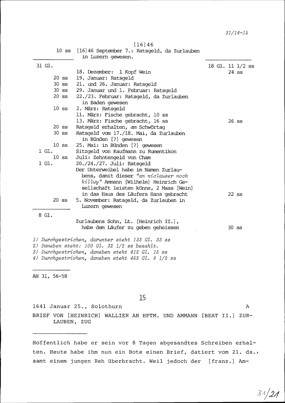Schreiben von Heinrich Wallier an Beat II. Zurlauben, Hauptmann und Ammann, Zug