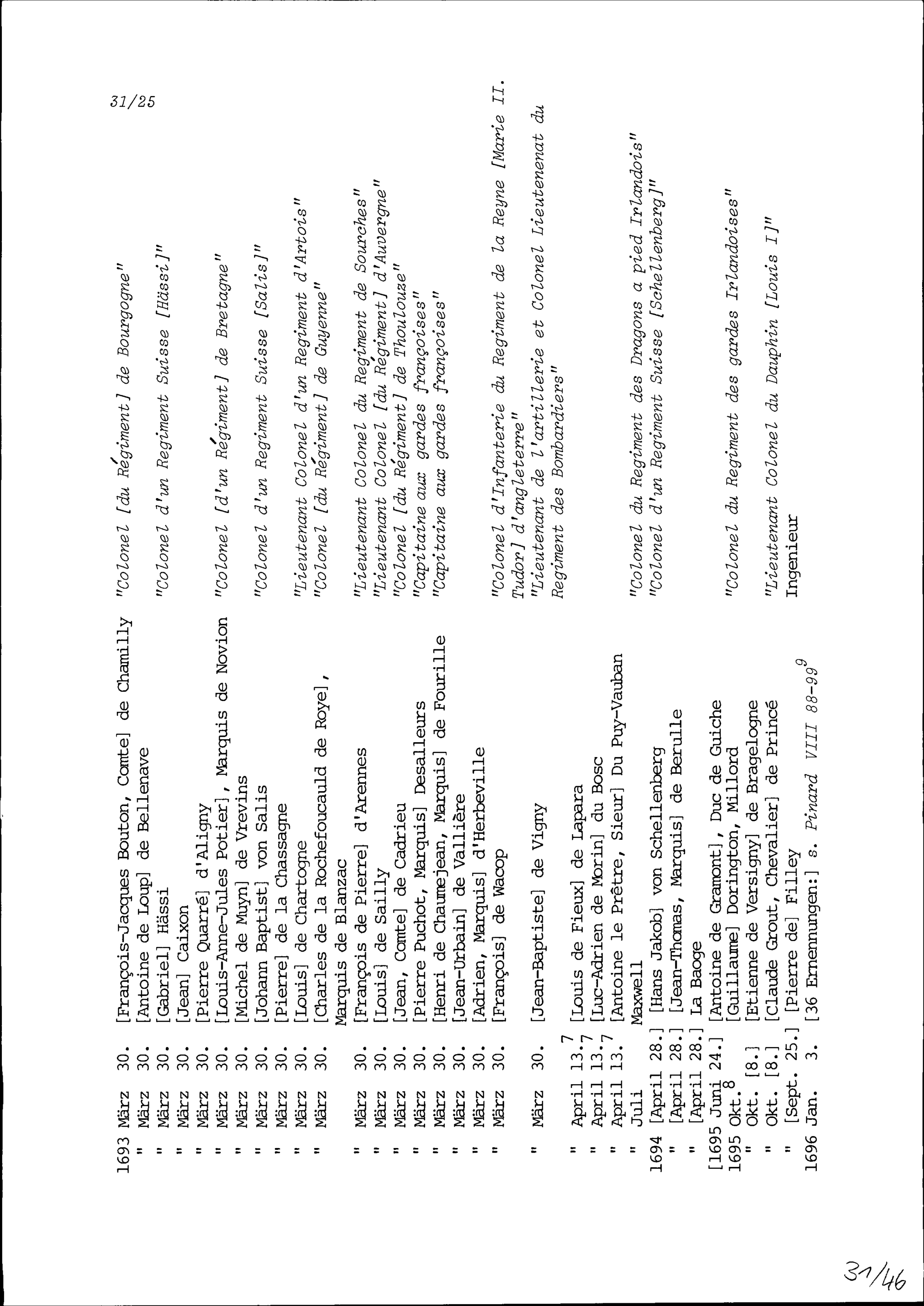 Offiziersliste der Jahre 1670 bis 1696