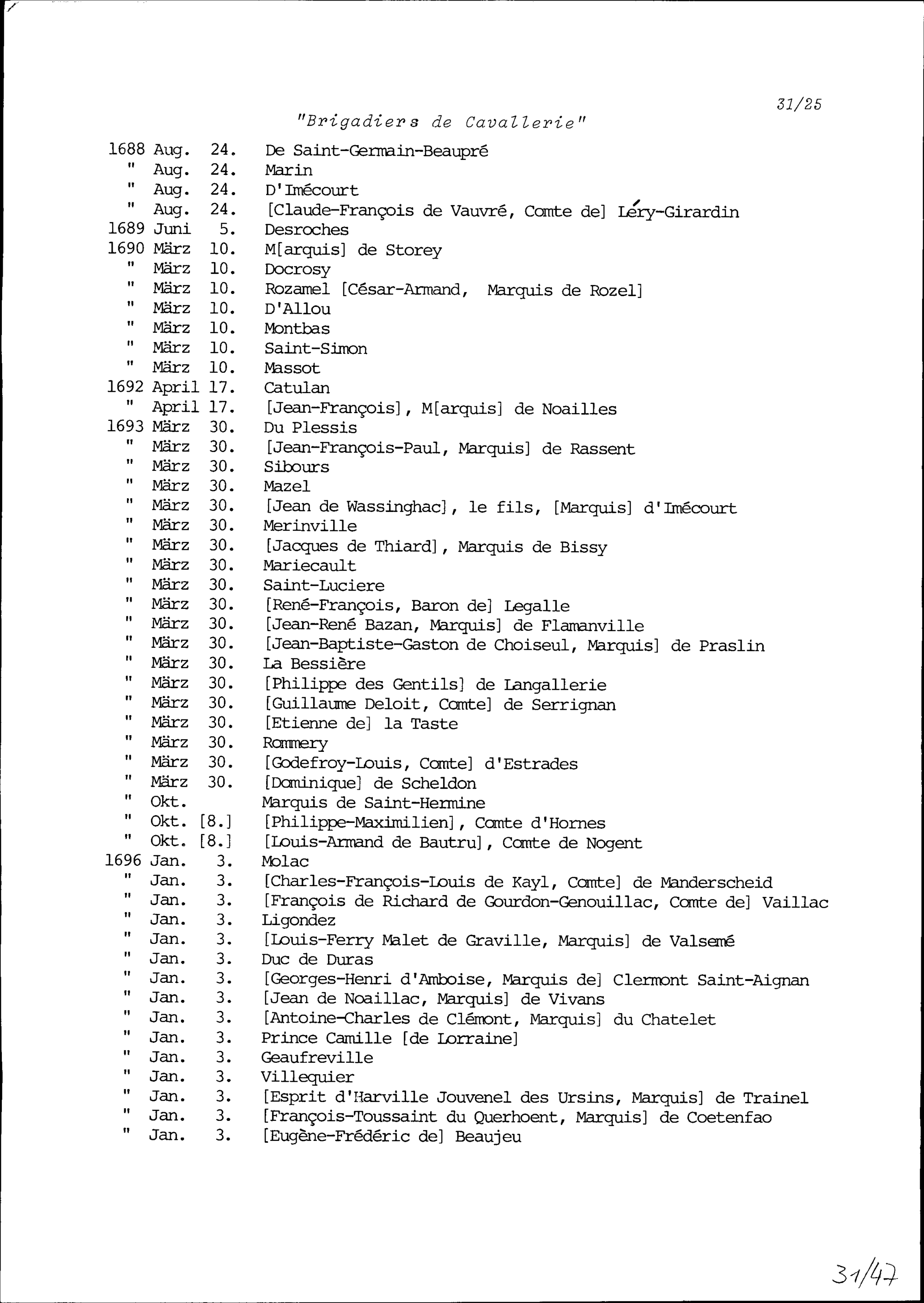 Offiziersliste der Jahre 1670 bis 1696