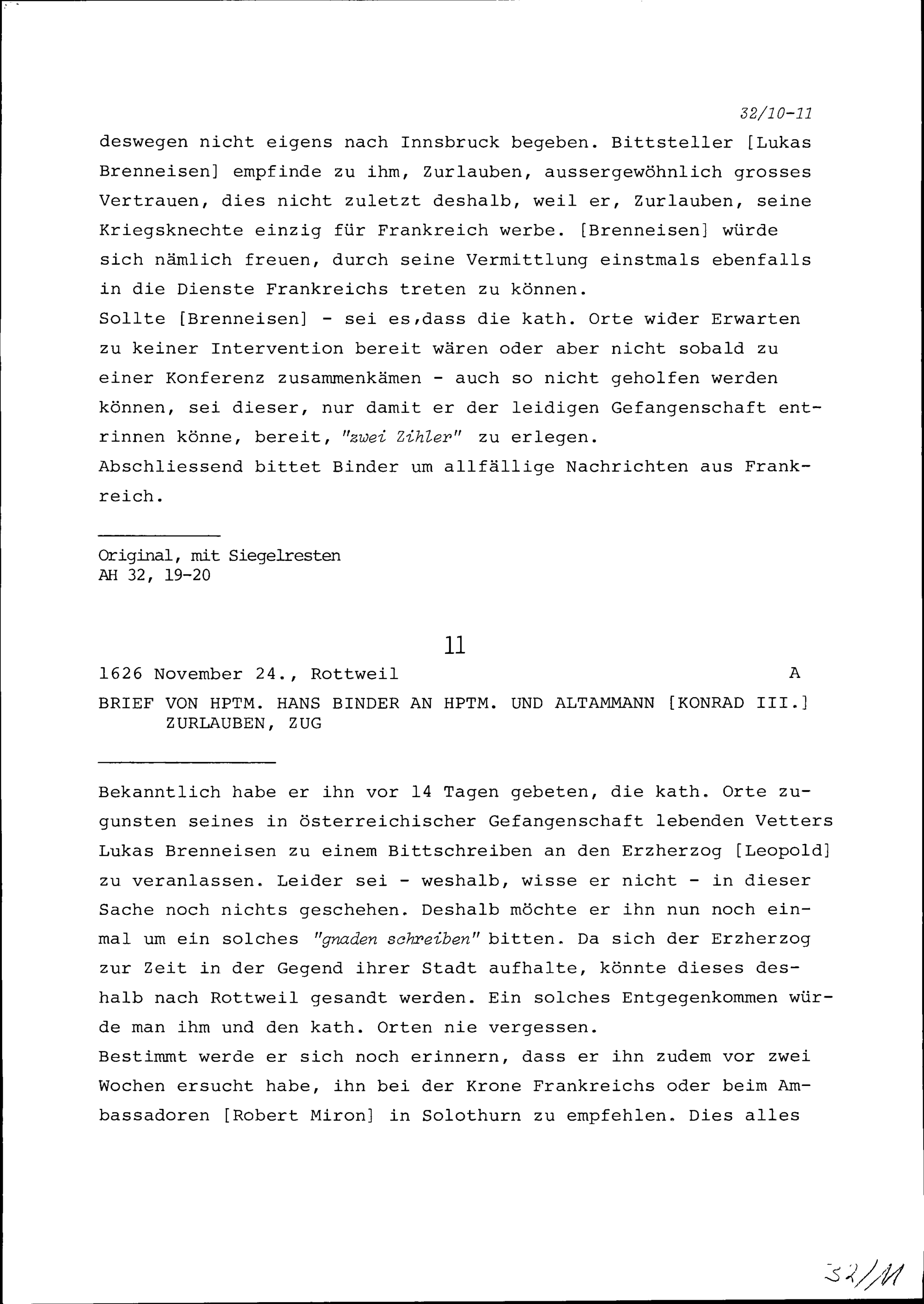 Schreiben von Hans Binder, Hauptmann, an Konrad III. Zurlauben, Hauptmann und Altammann, Zug