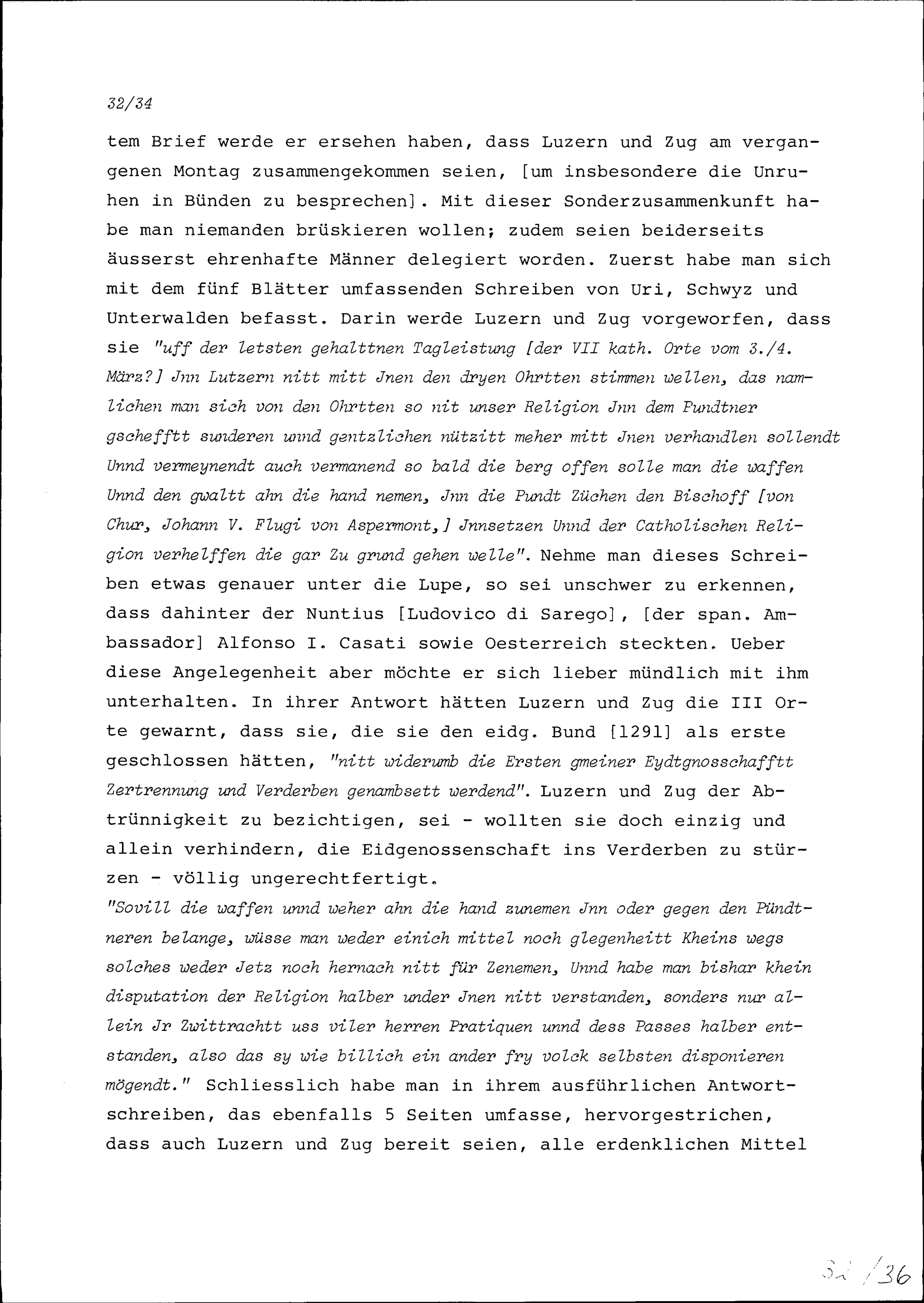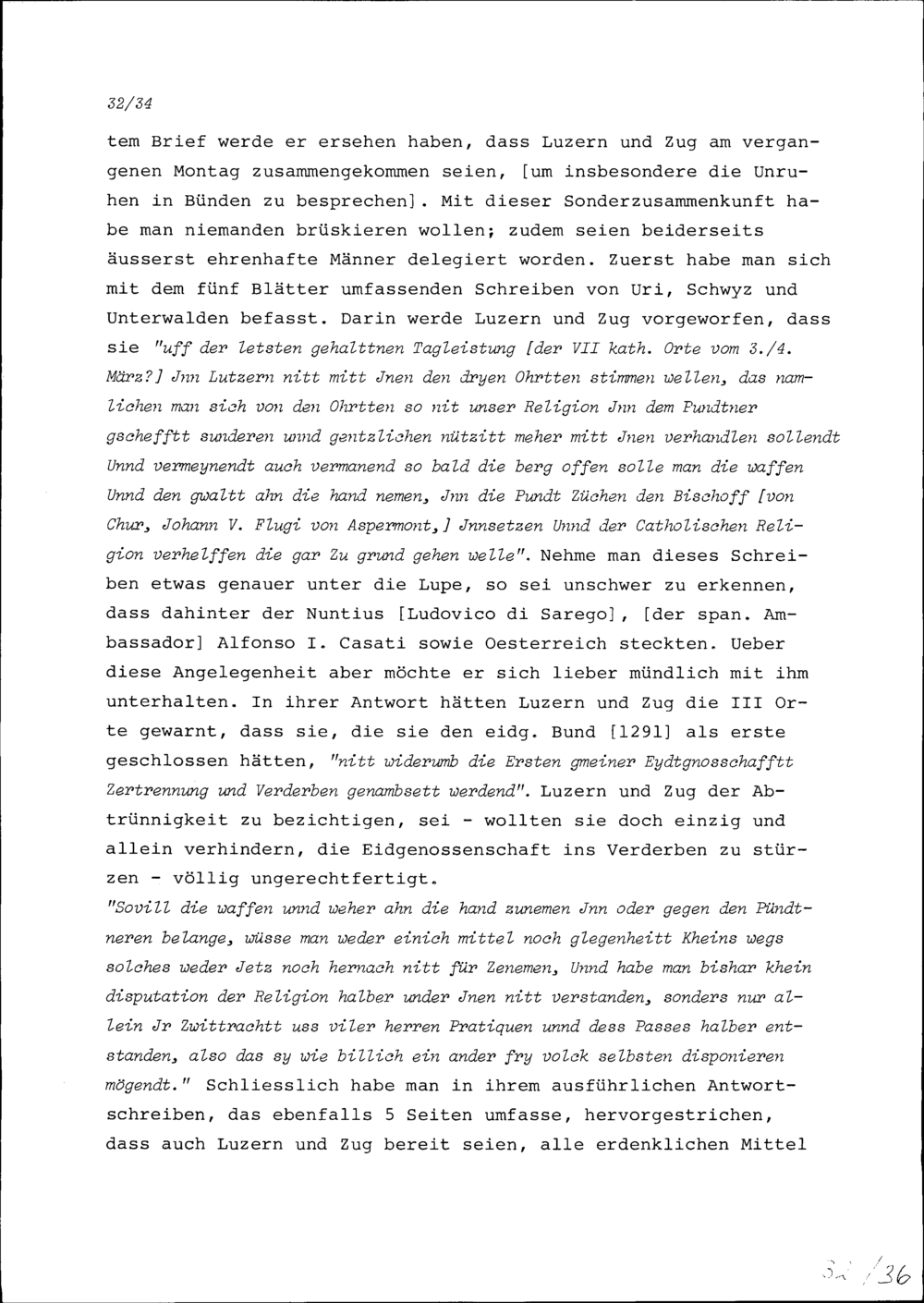 Schreiben von Konrad III. Zurlauben an Robert Miron, Ambassador von Frankreich