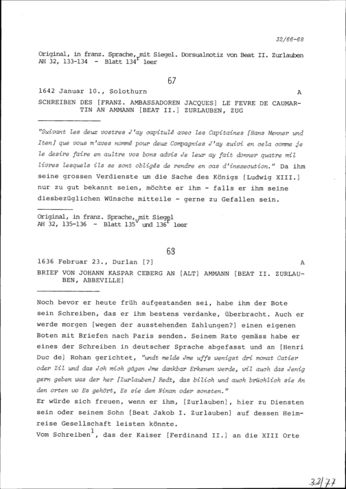 Schreiben von Jacques Le Fèvre de Caumartin, Ambassador von Frankreich, an Beat II. Zurlauben, Ammann, Zug