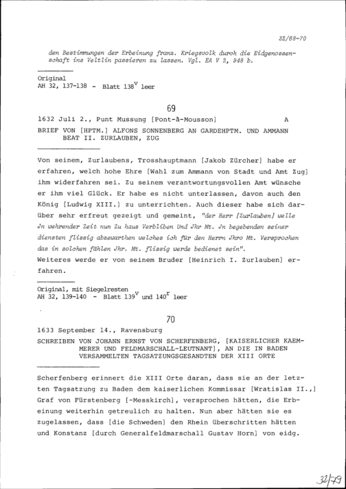 Schreiben von Alfons von Sonnenberg, Hauptmann, an Beat II. Zurlauben, Gardehauptmann...