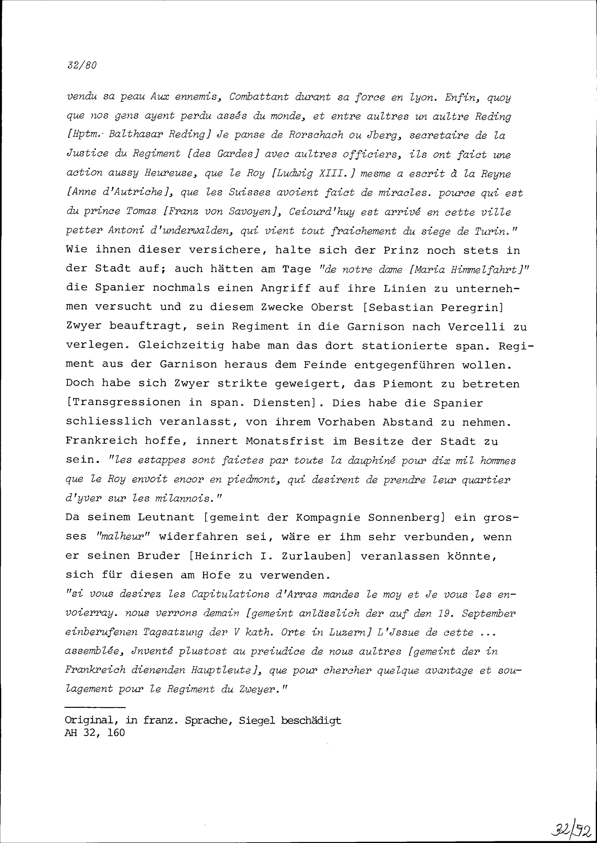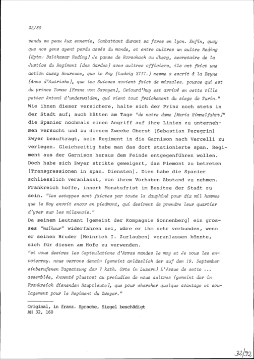 Schreiben von Alfons von Sonnenberg an Beat II. Zurlauben, Ammann, Zug