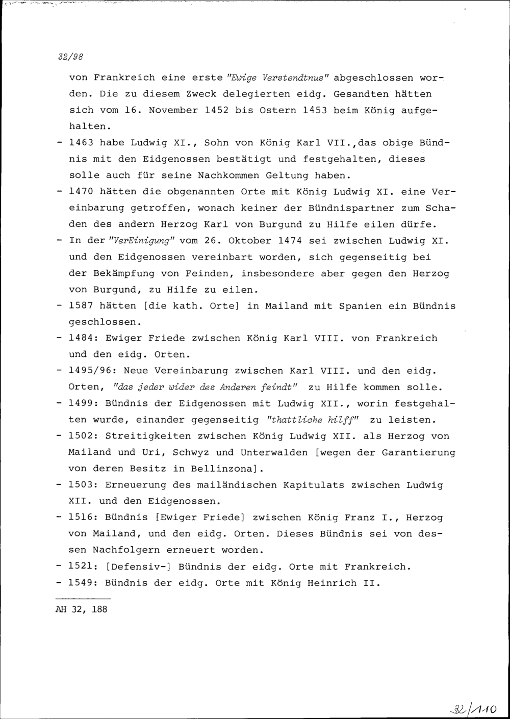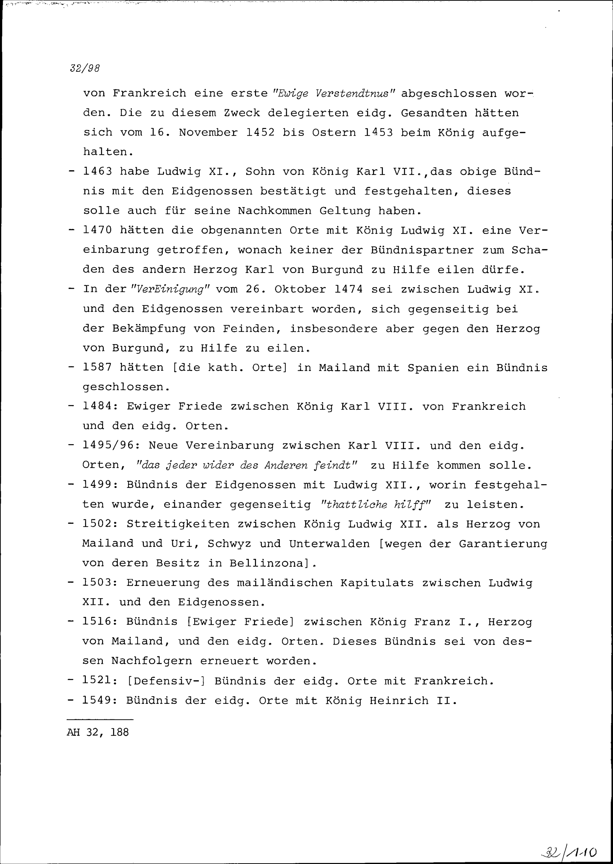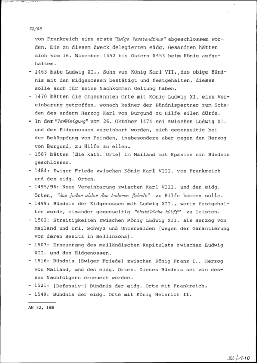 Notiz von Beat Jakob I. Zurlauben über die Bündnisse der Eidgenössischen Orte, insbesondere mit Frankreich