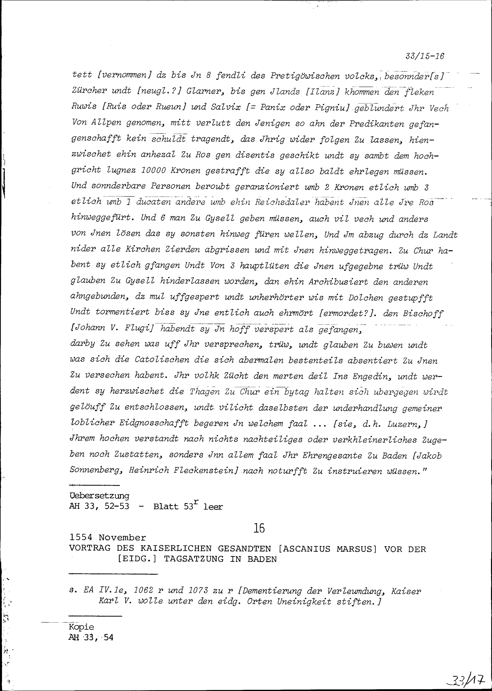 Vortrag von Ascanius Marsus, kaiserlicher Gesandter, vor der Eidgenössischen Tagsatzung...