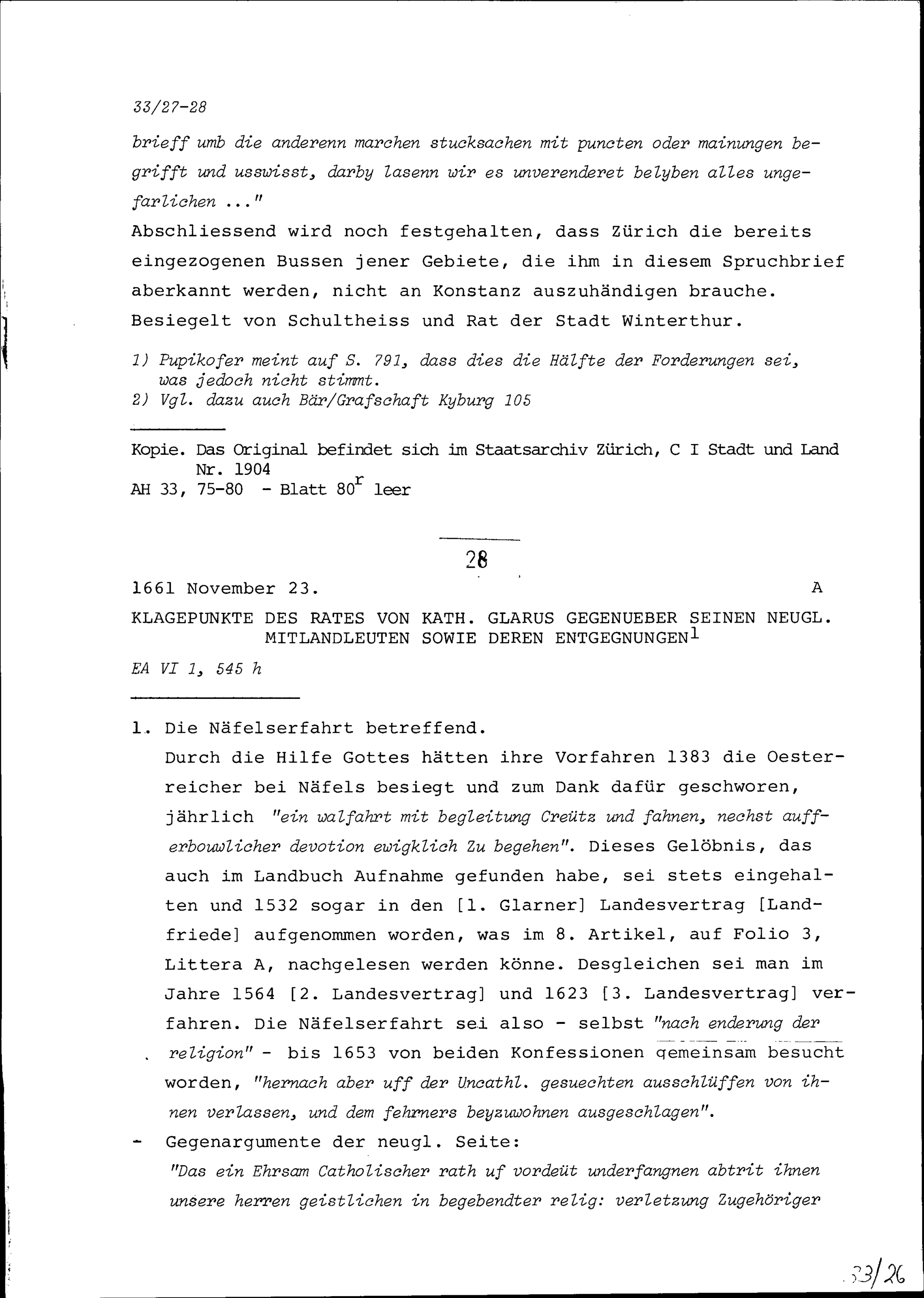 Klagen des Rats von Katholisch Glarus gegenüber seinen neugläubigen Mitlandleuten...