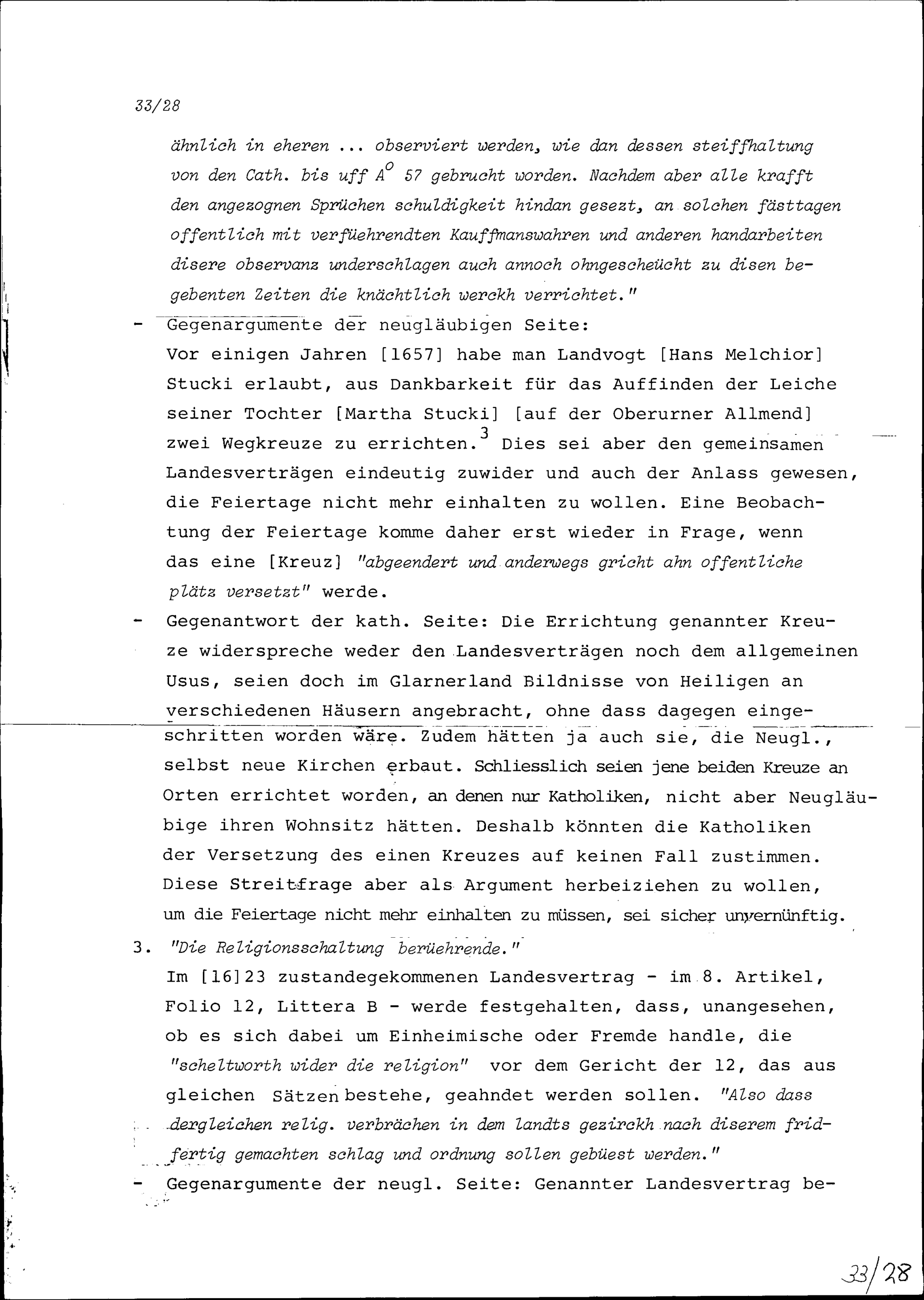 Klagen des Rats von Katholisch Glarus gegenüber seinen neugläubigen Mitlandleuten...