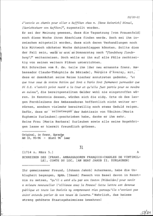 Schreiben von François-Charles de Vintimille, Graf du Luc, Ambassador von Frankreich,...