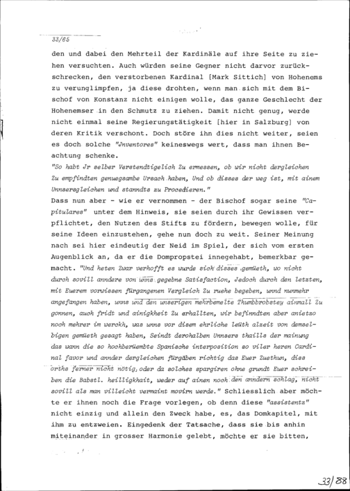 Schreiben von Mark Sittich, der Jüngere, von Hohenems, Erzbischofs von Salzburg und Dompropsts von Konstanz, an das Domkapitel in Konstanz