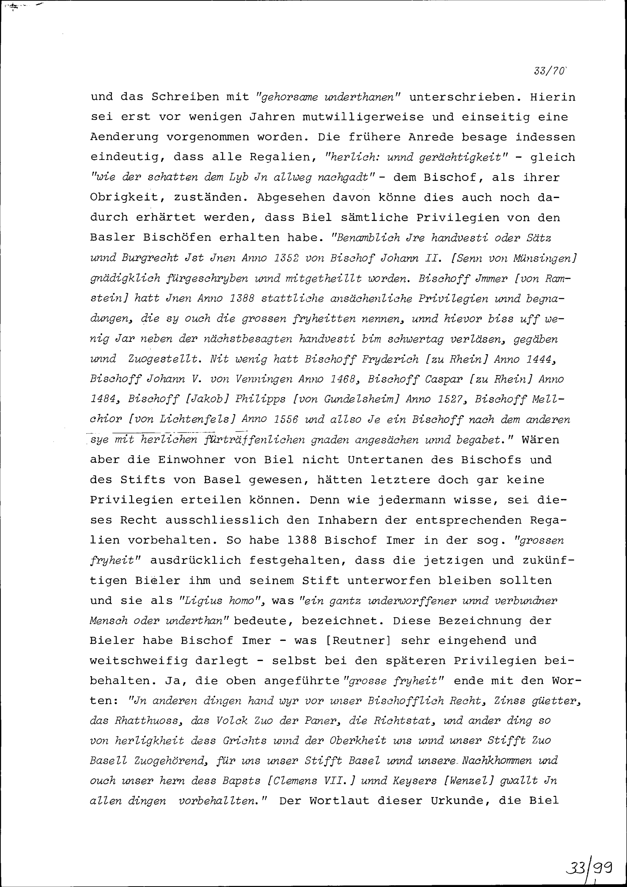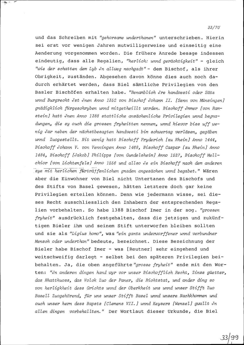 Vortrag von Hans Wilhelm Reutner, Gesandter des Bistums Basel, an der Tagsatzung der Neugläubigen Orte in Aarau wegen des Bieler Tauschhandels