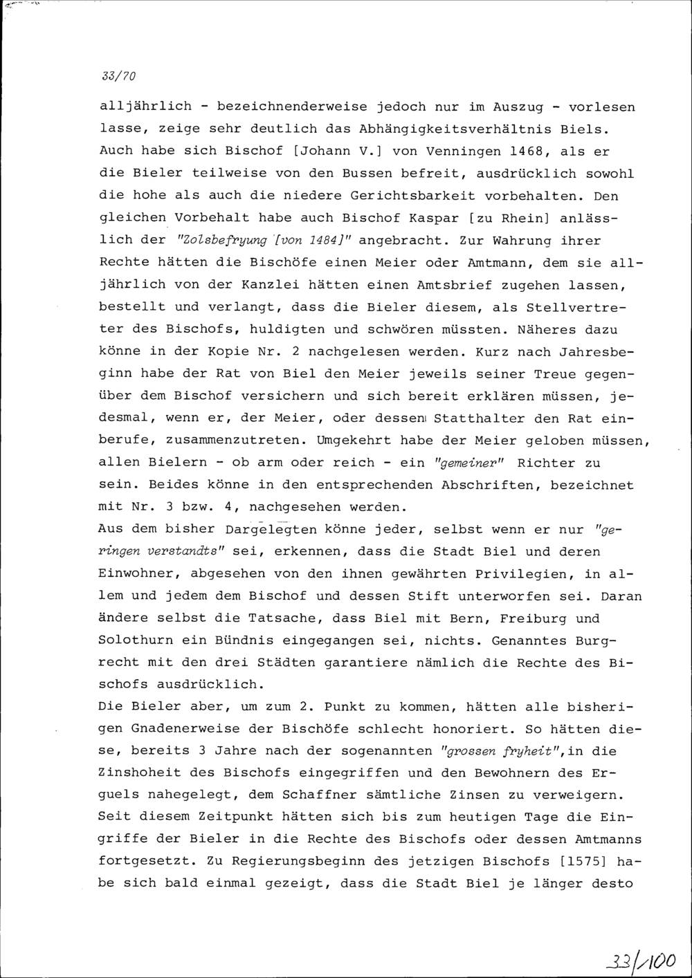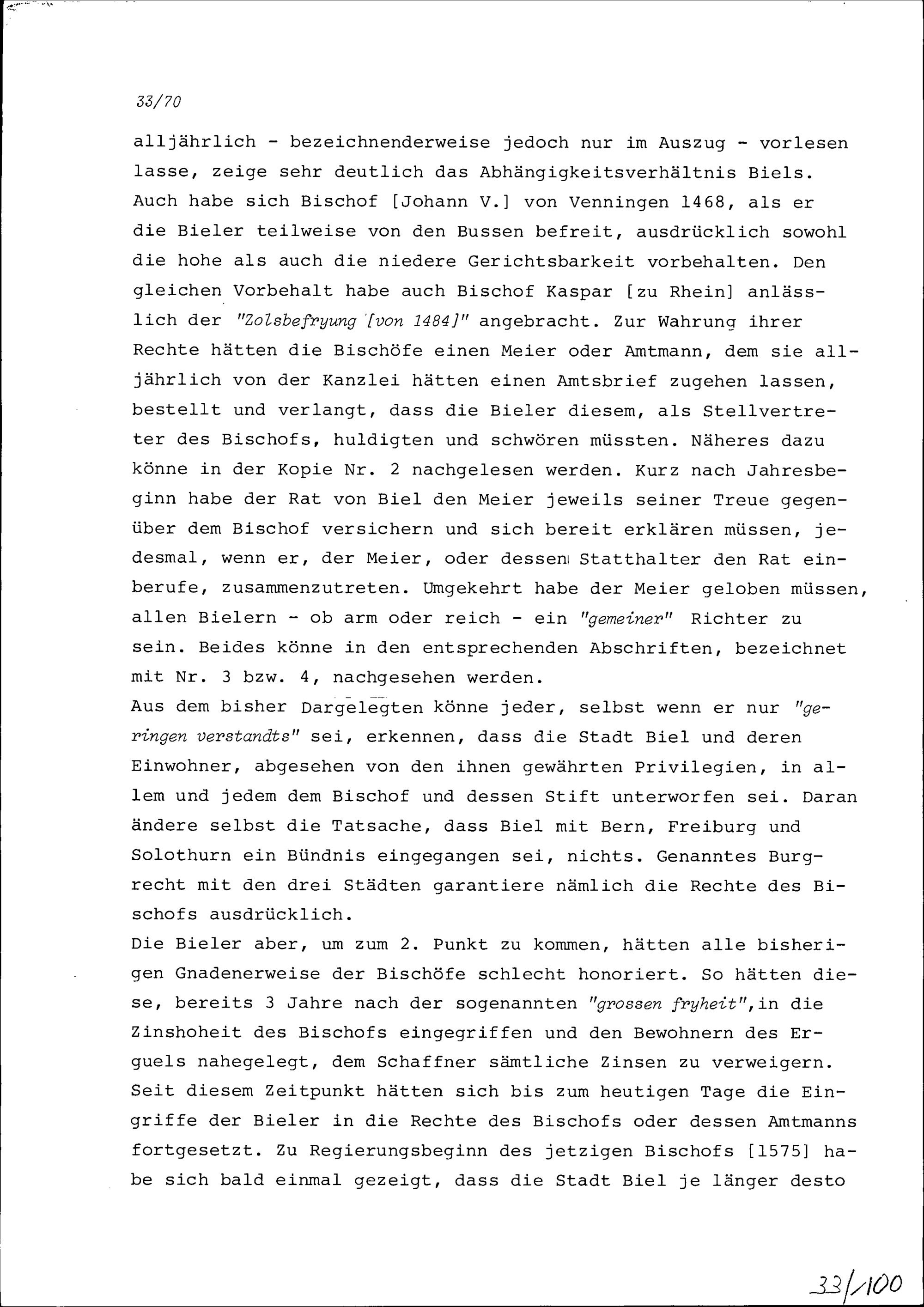 Vortrag von Hans Wilhelm Reutner, Gesandter des Bistums Basel, an der Tagsatzung der Neugläubigen Orte in Aarau wegen des Bieler Tauschhandels