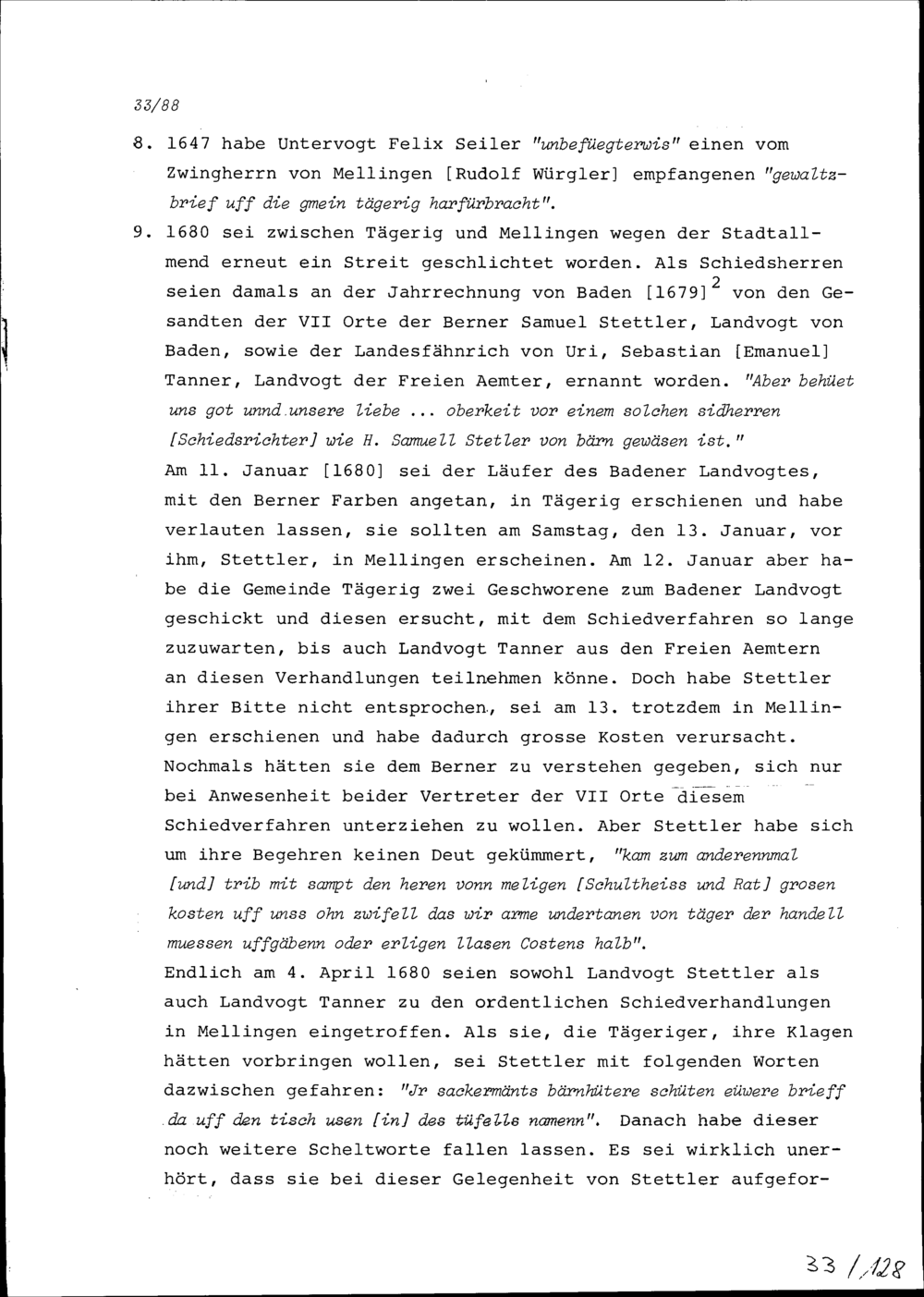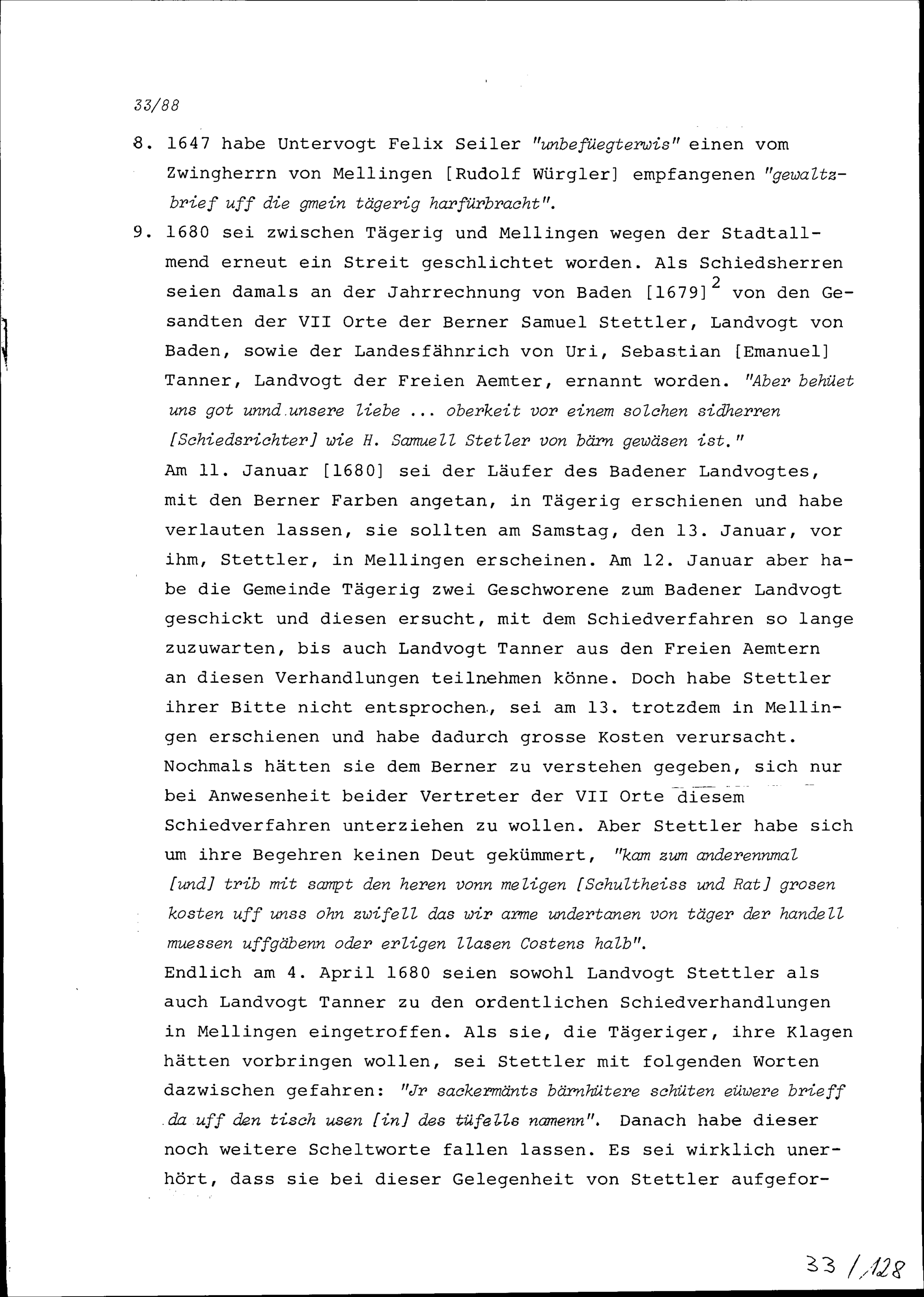 Zusammenstellung von Streitfällen zwischen Tägerig und Mellingen