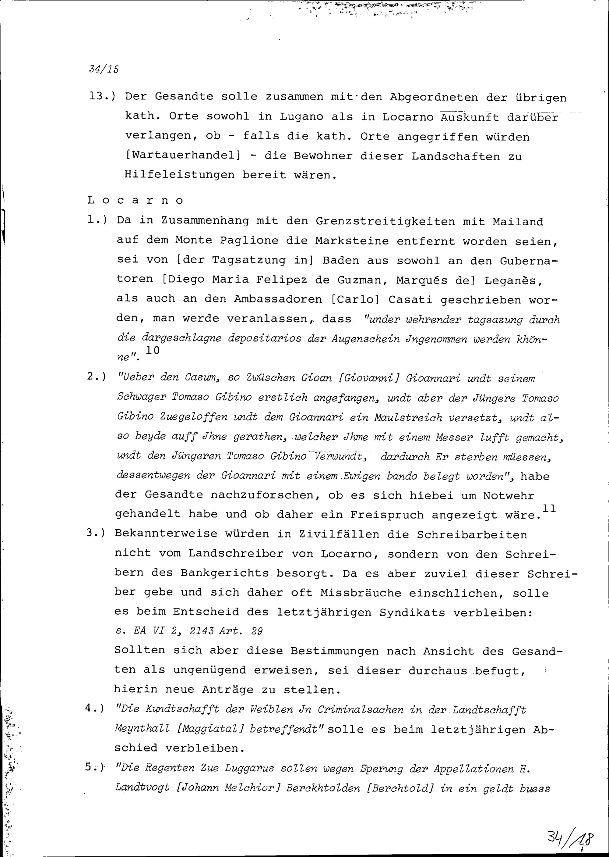 Instruktion von Stadt und Amt Zug auf die Jahrrechnung der enntebirgisch-regierenden Orte in Lugano vom 10. August 1695 und in Locarno nach dem 10. August 1695