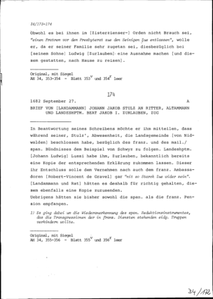 Schreiben von Johann Jakob Stulz, Landammann, an Beat Jakob I. Zurlauben, Altammann und Landeshauptmann, Zug