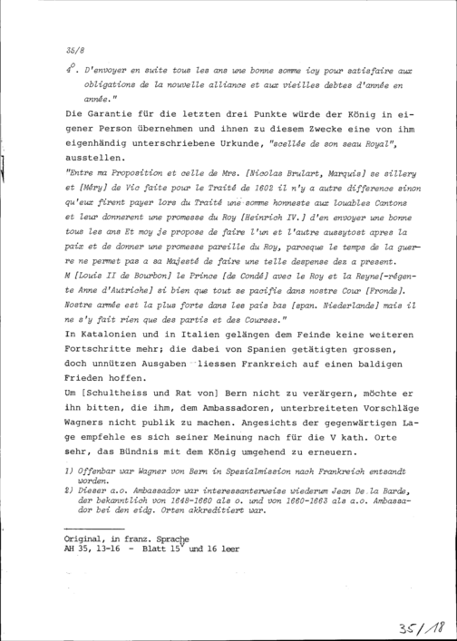 Schreiben von Jean de la Barde, Ambassador von Frankreich, an Beat II. Zurlauben