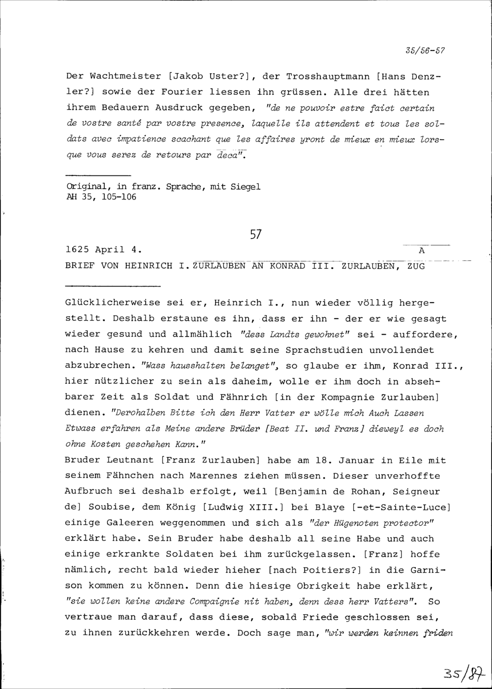 Schreiben von Heinrich I. Zurlauben an Konrad III. Zurlauben, Zug