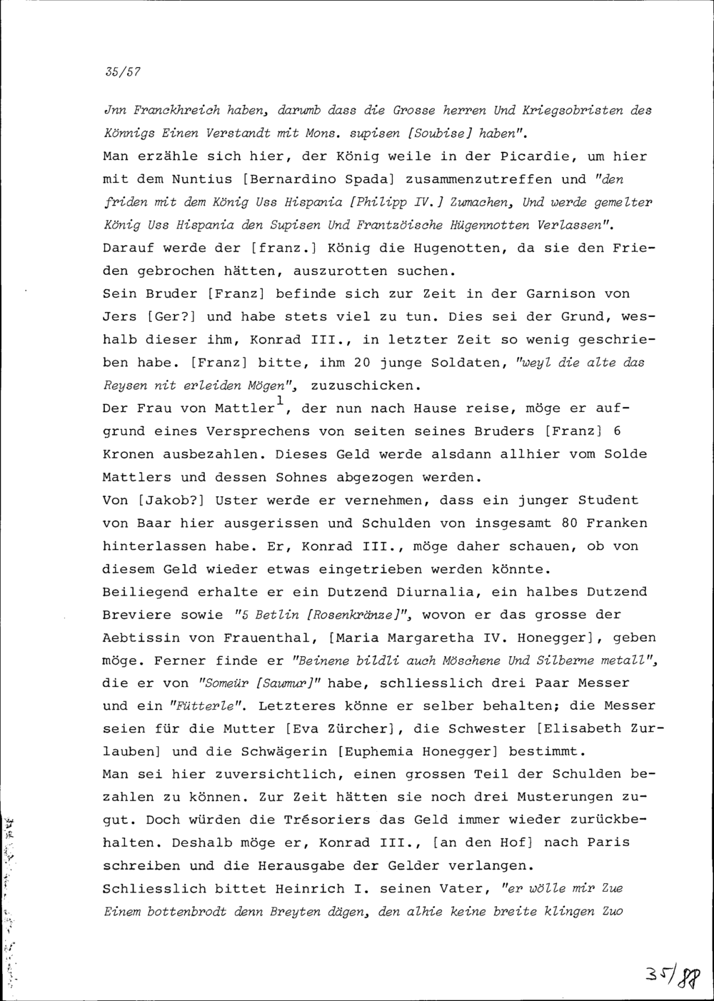 Schreiben von Heinrich I. Zurlauben an Konrad III. Zurlauben, Zug