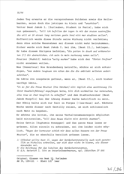 Schreiben von Heinrich I. Zurlauben an Beat II. Zurlauben, Ammann und Hauptmann