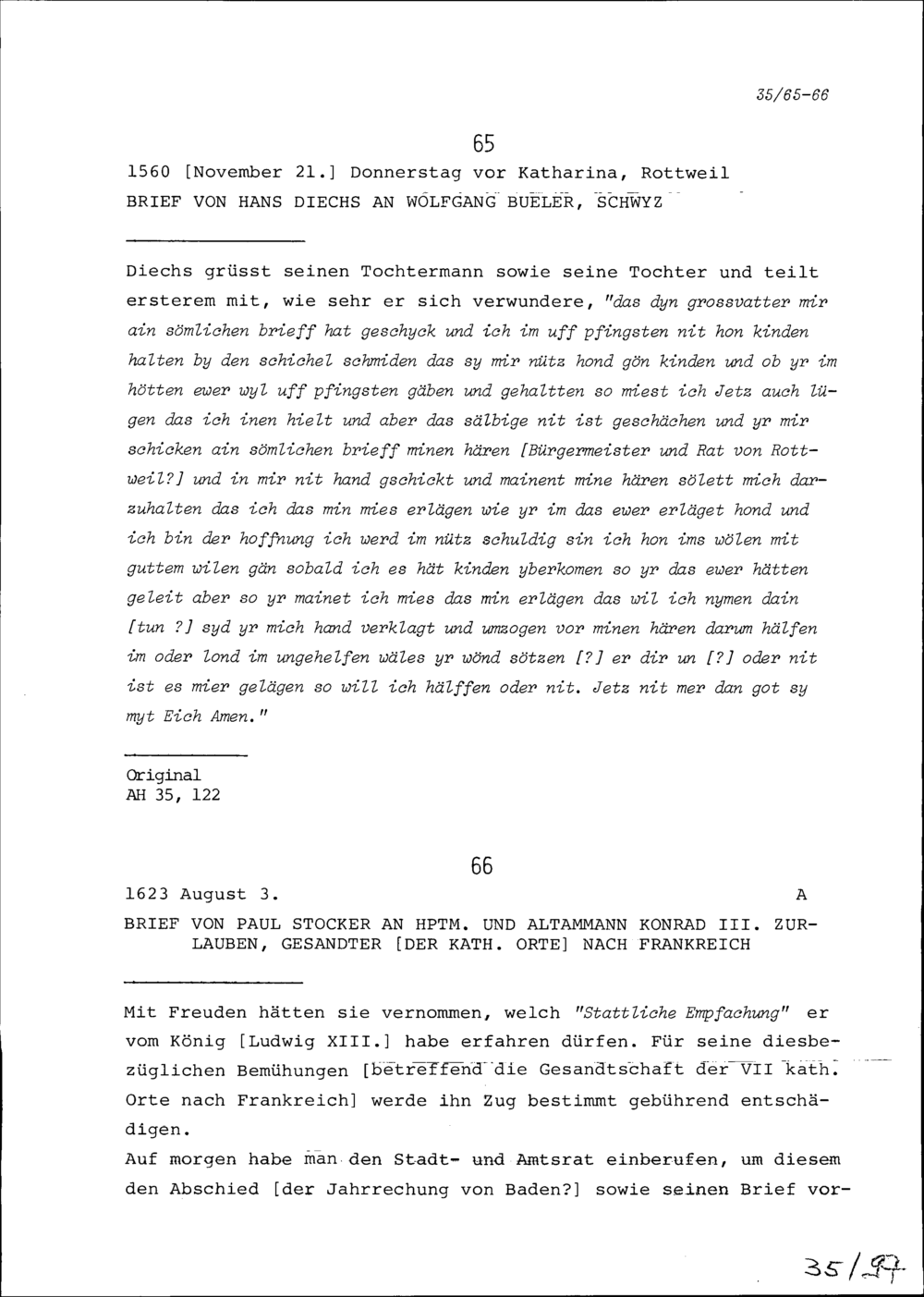 Schreiben von Hans Diechs an Wolfgang Büeler, Schwyz