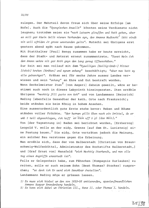 Schreiben von Paul Stocker an Konrad III. Zurlauben, Hauptmann, Altammann und Gesandter...