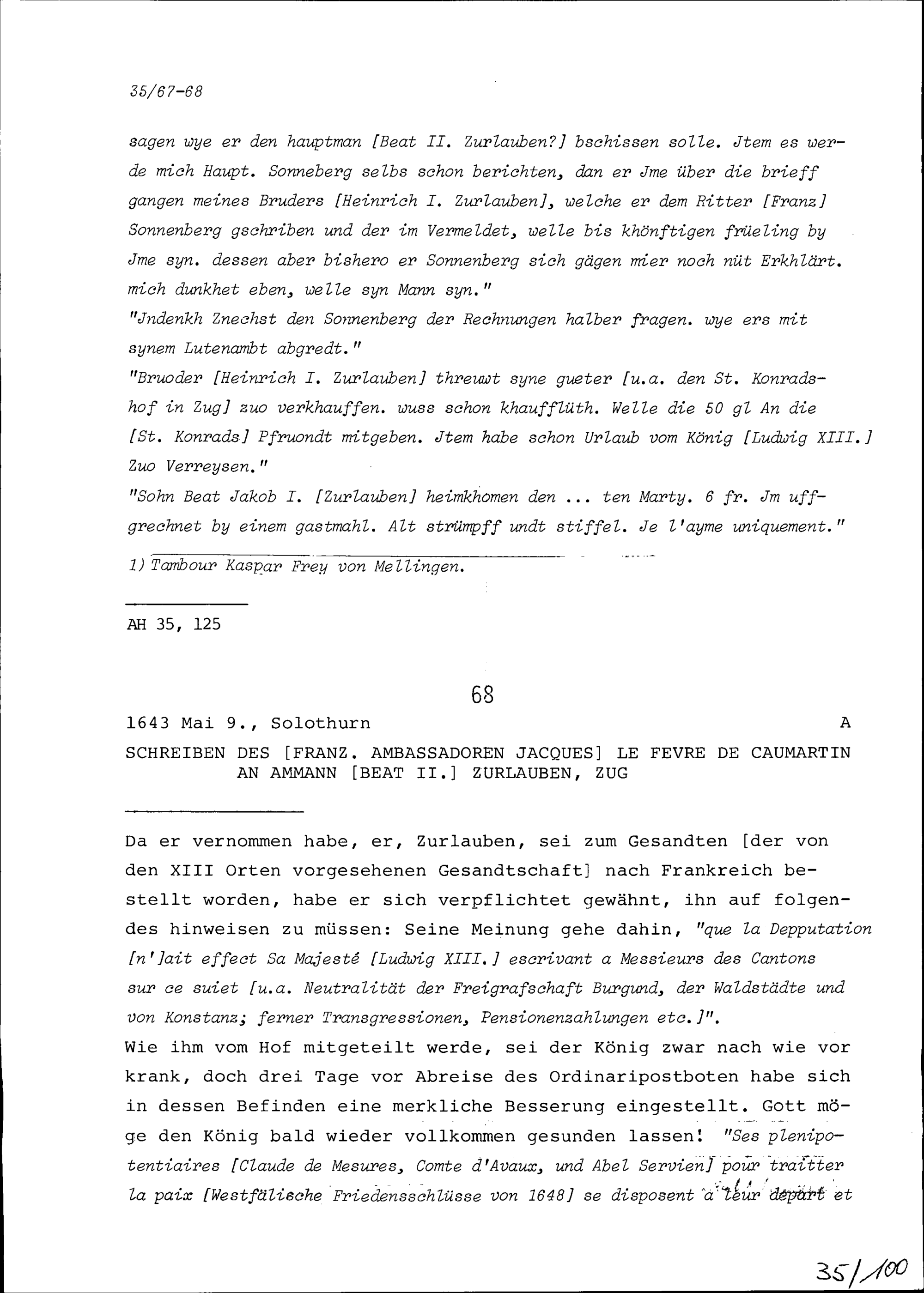 Schreiben von Jacques Le Fèvre de Caumartin, Ambassador von Frankreich, an Beat II. Zurlauben, Ammann, Zug