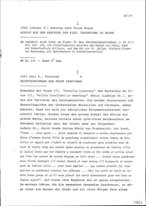 Abschied der Eidgenössischen Tagsatzung in Baden (Auszug)