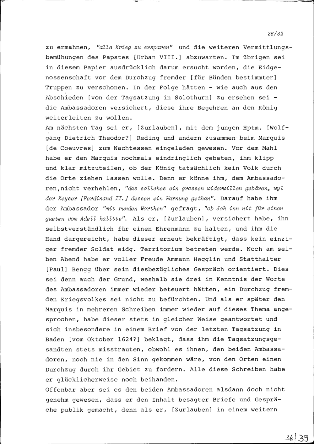 Bericht von Konrad III. Zurlauben über die Frage, ob Frankreich Truppen durch eidgenössisches...