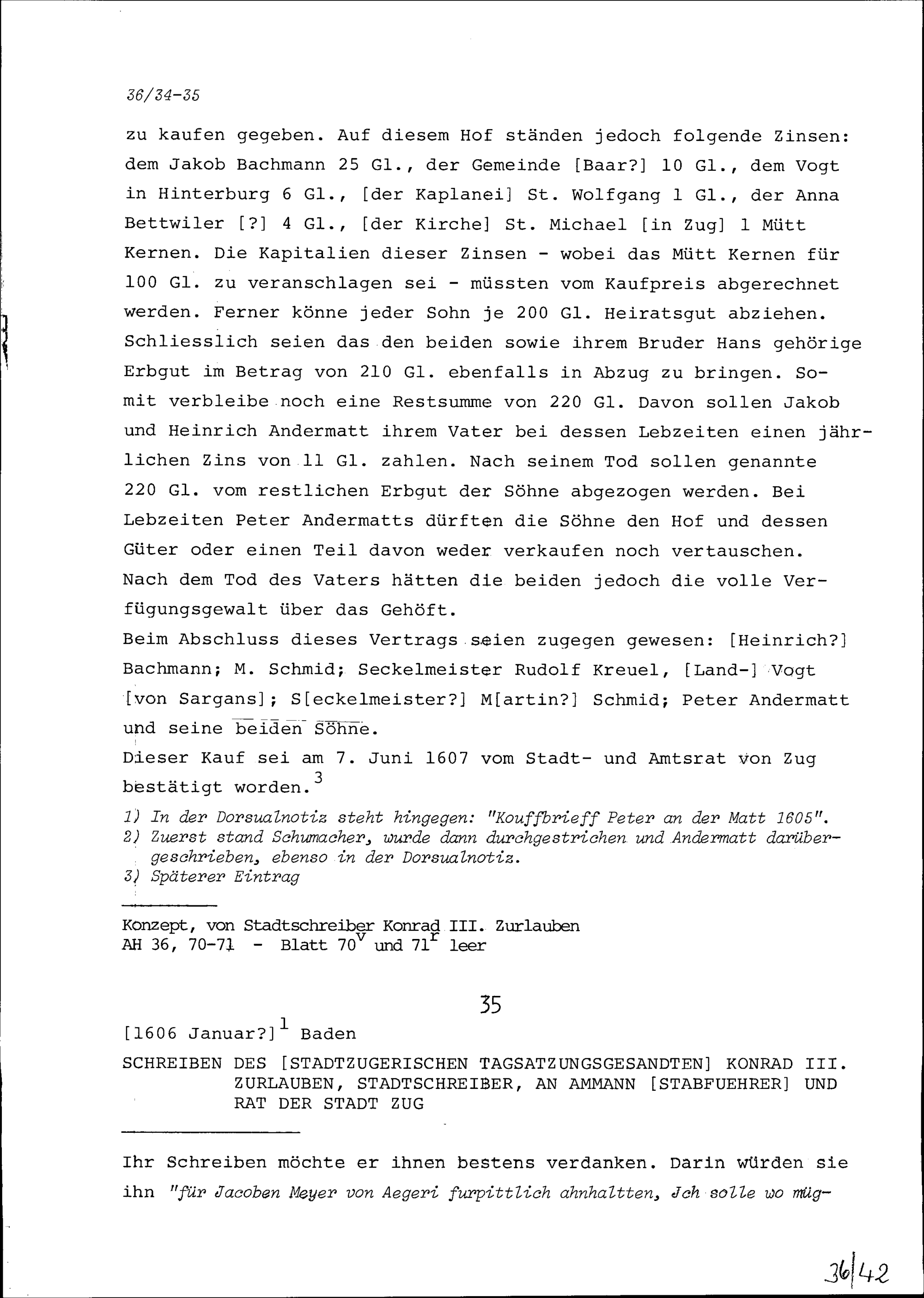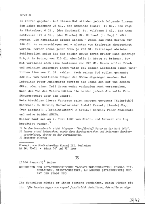 Schreiben von Konrad III. Zurlauben, Zuger Tagsatzungsgesandter und Stadtschreiber, an Ammann (Stabführer) und Rat der Stadt Zug