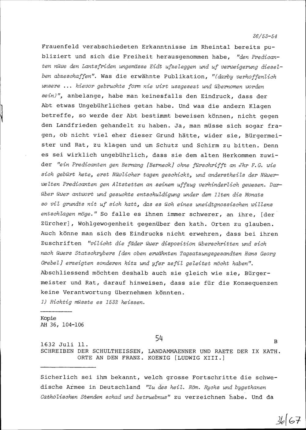 Schreiben der Schultheissen, Landammänner und Räte der Neun Katholischen Orte an Ludwig XIII., König von Frankreich