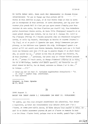 Schreiben von Beat Jakob I. Zurlauben an Beat II. Zurlauben