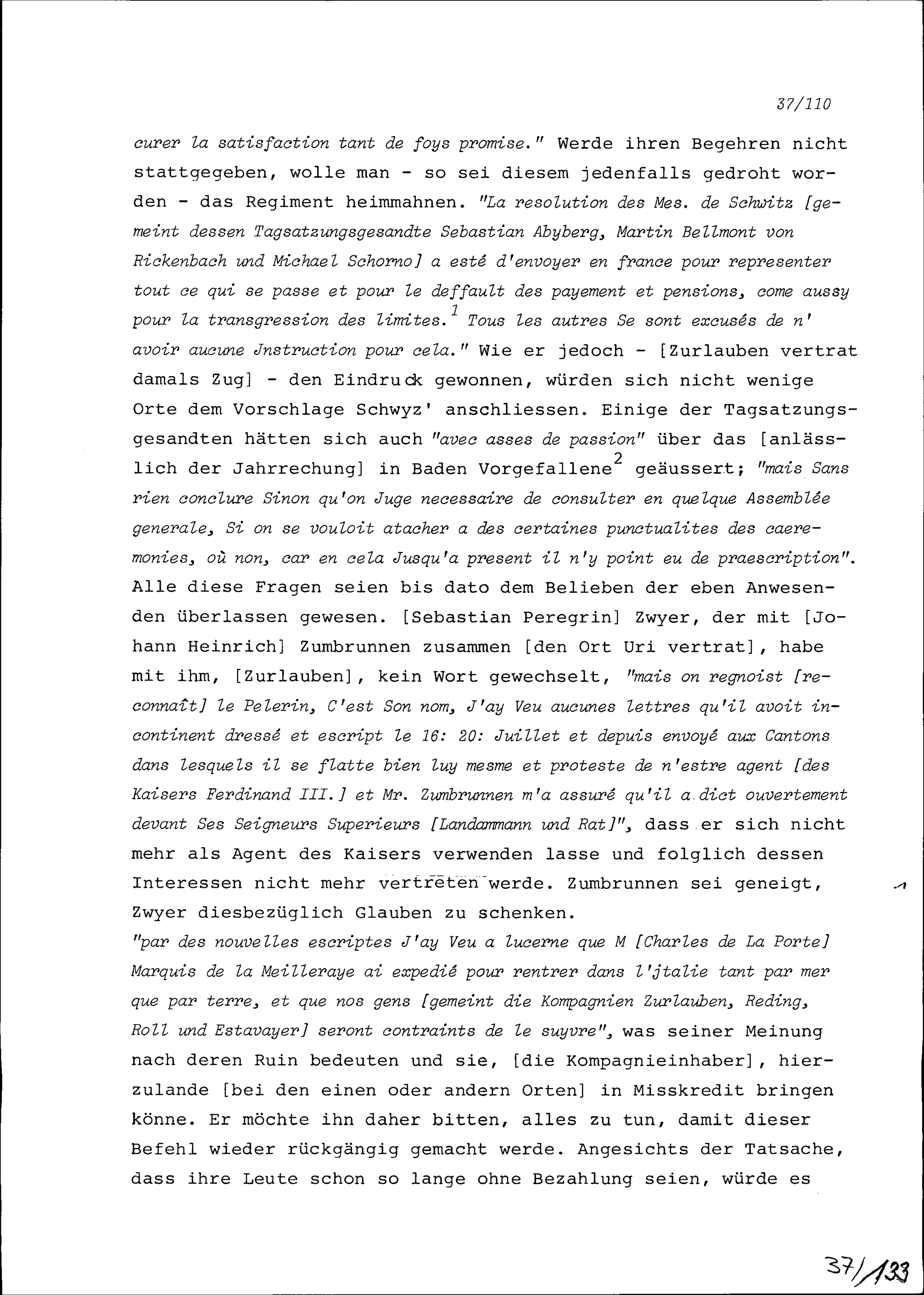 Schreiben von Beat II. Zurlauben an Jacques Le Fèvre de Caumartin, Ambassador von Frankreich