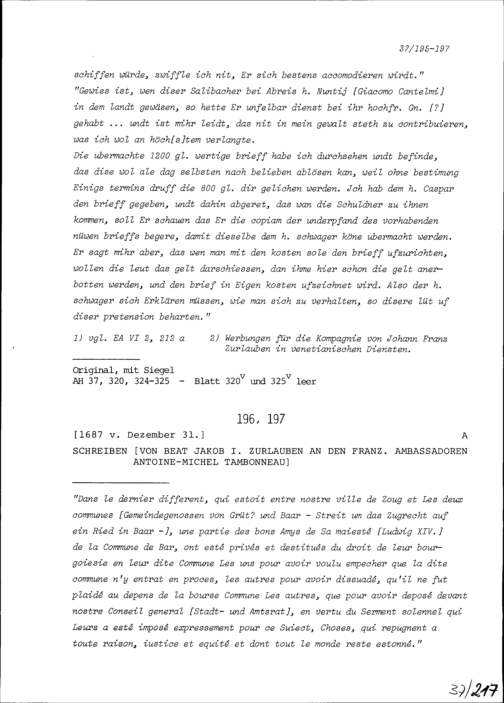 Schreiben von Beat Jakob I. Zurlauben an Antoine-Michel Tambonneau, Ambassador von...