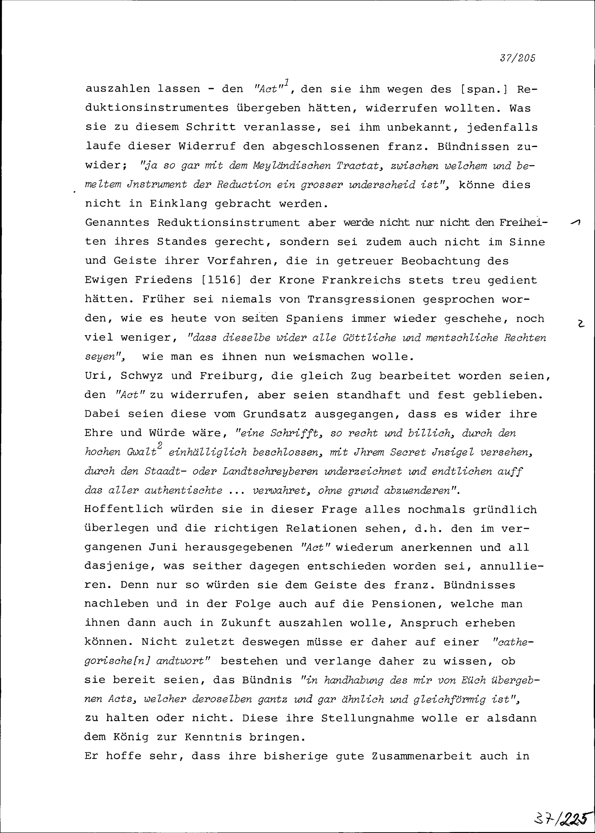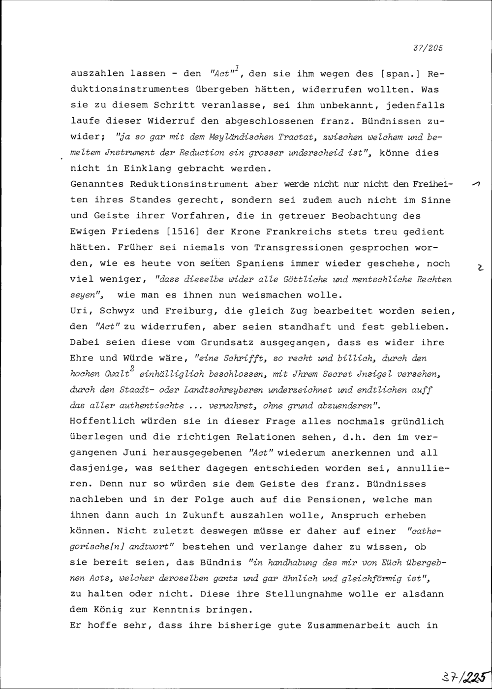Schreiben von Robert-Vincent de Gravel, Ambassador von Frankreich, an Ammann, Rat...
